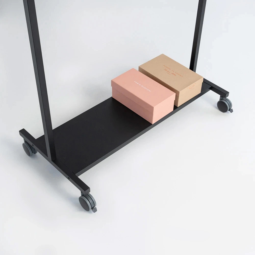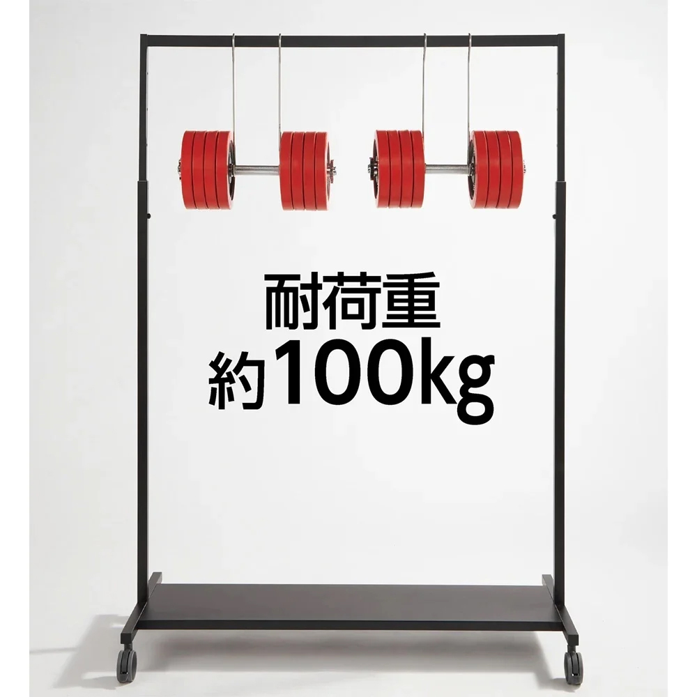 ハンガーバー2本の総耐荷重200kgの頑丈設計。高品質、高耐久性のキャスターを採用し、たくさん掛けてもスルスルと楽にスムーズに動かせます。 ※写真は別売りの幅100cmタイプです。