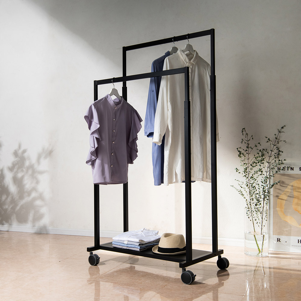 後ろのハンガーバーを高く設定すれば、掛けた服が前後とも一目で見渡せます。