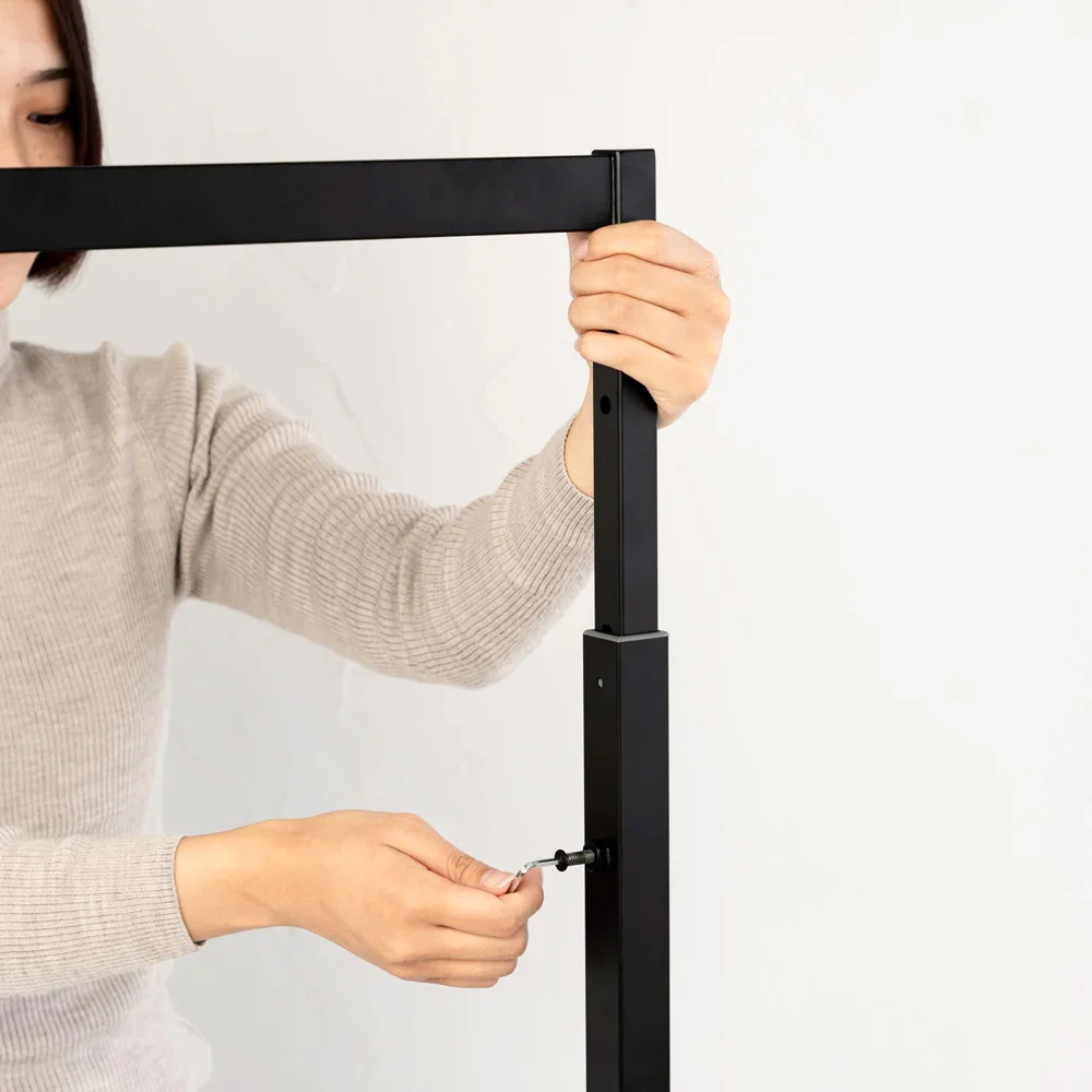 ビスで高さ調整穴にしっかり固定するので、洋服をたくさん掛けても、たわんだり歪んだりしにくい仕様です。