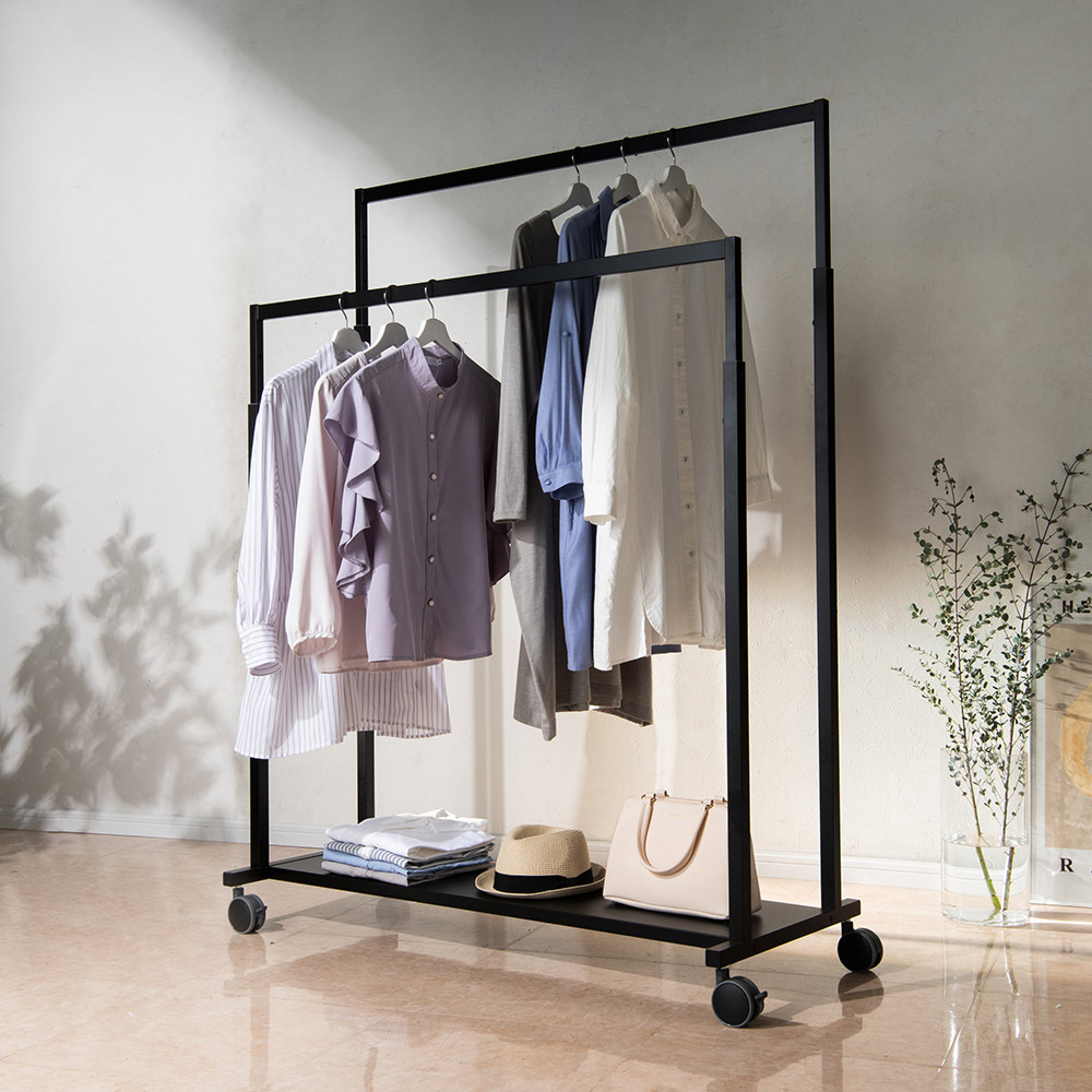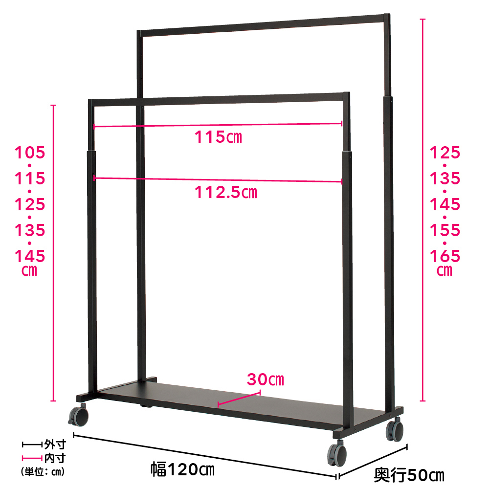 前後2本のハンガーバーはそれぞれ独立して高さが設定可能。高さが10cm刻みで5段階から選べます。