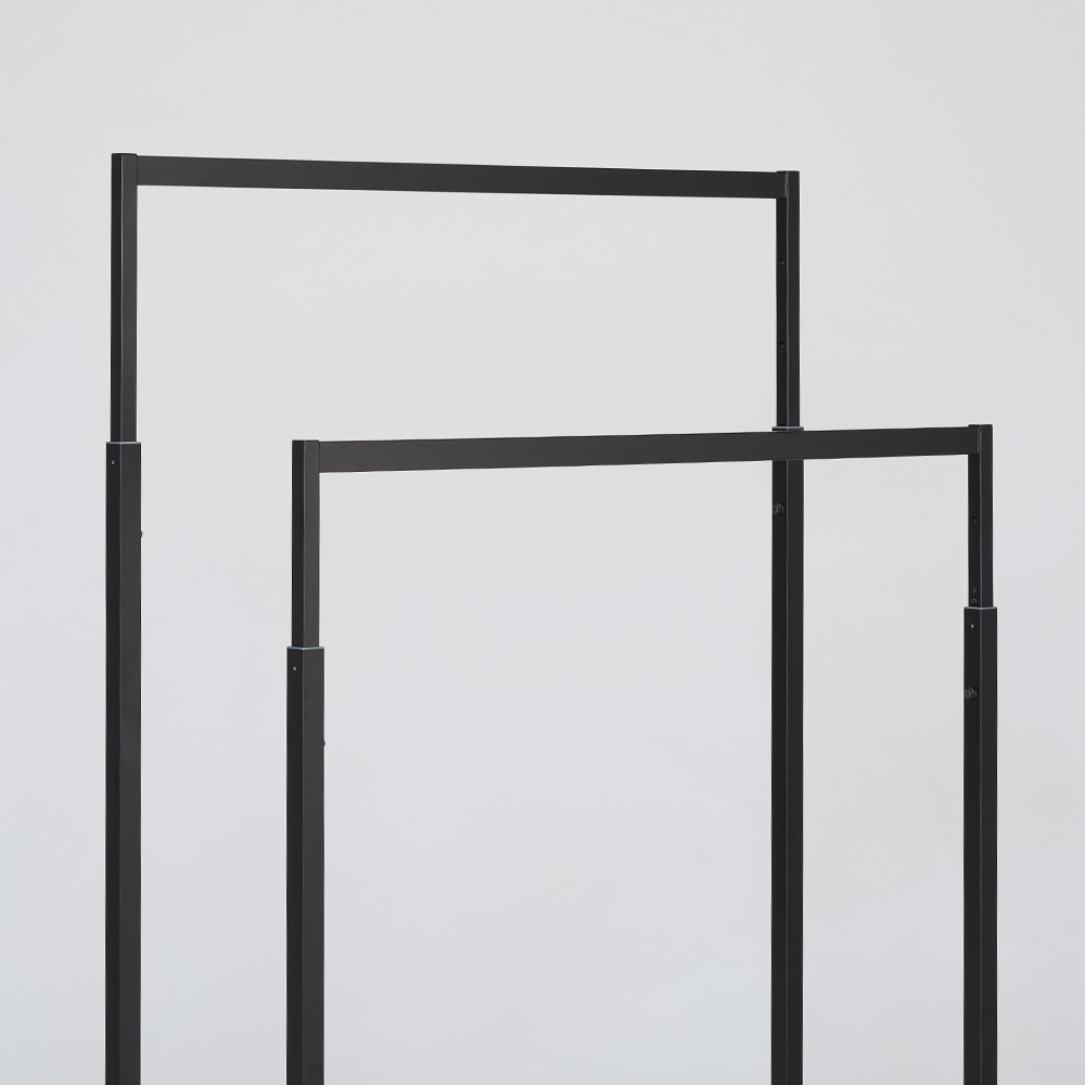 後ろのハンガーバーを高く設定すれば、掛けた服が前後とも一目で見渡せます。
