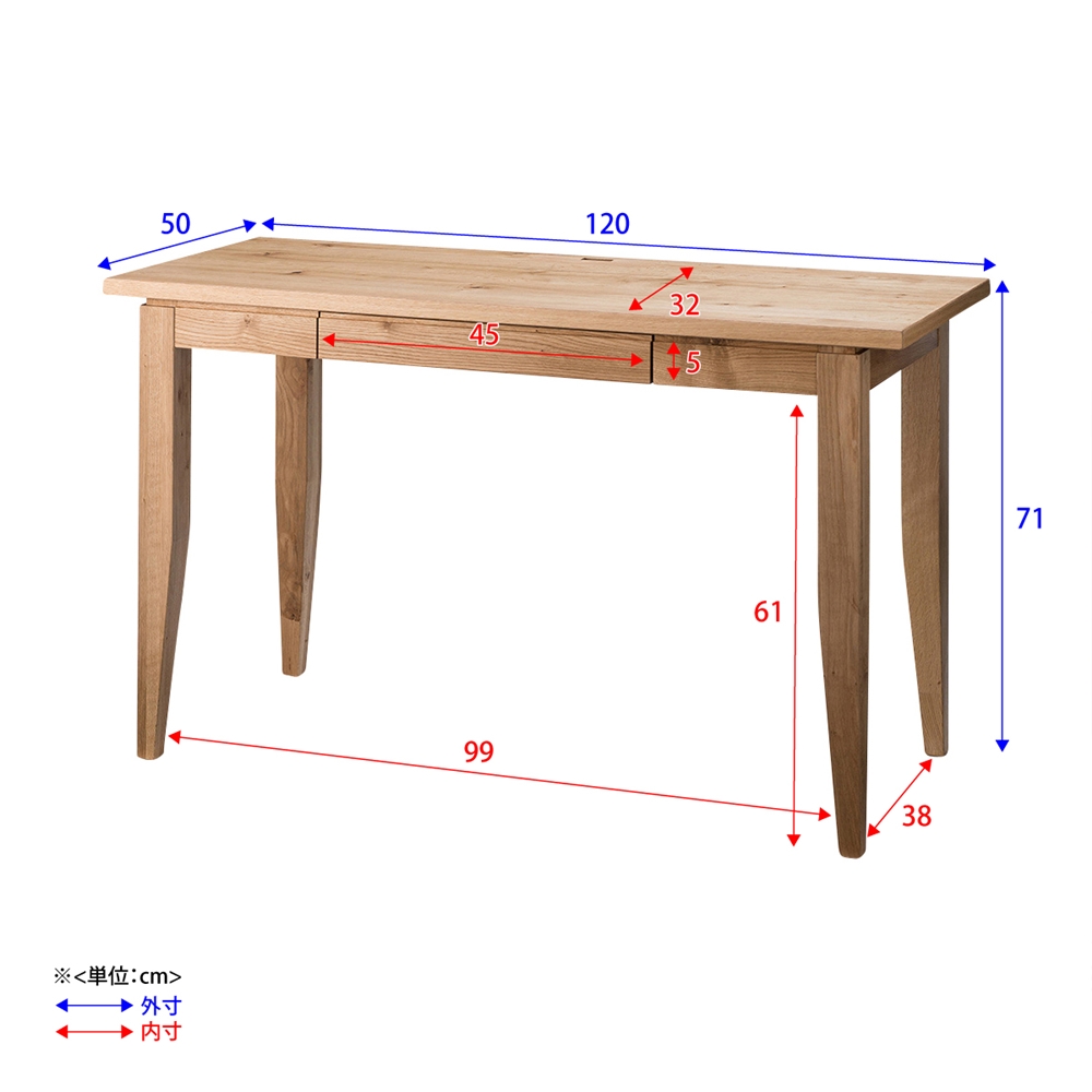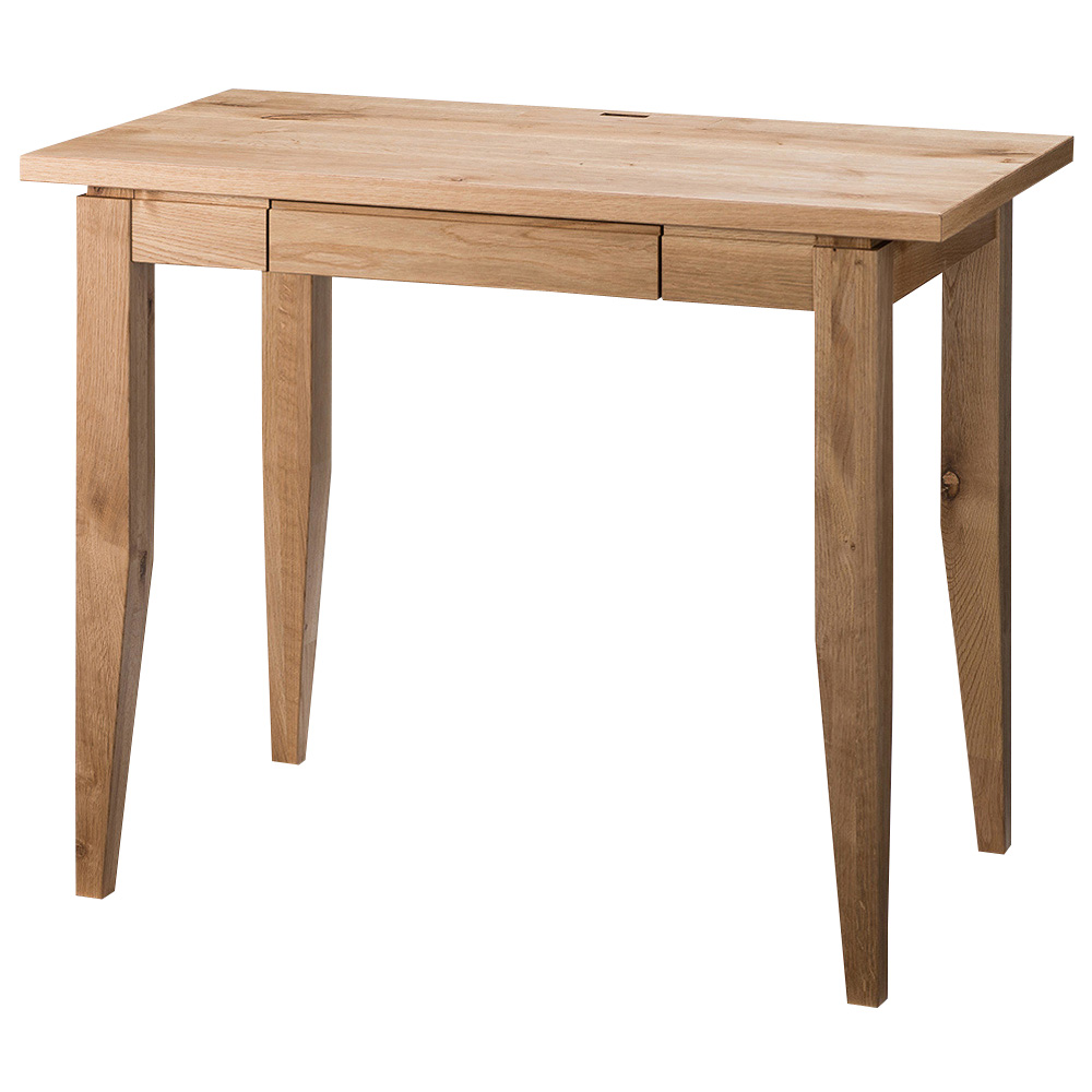 北海道産のオークを使用した、味わい深いPCデスクシリーズ。オーク材特有の風合いが醸し出す自然の素材感。使い込むほどに味わいが増し、時と共に愛着も深まる独特の経年変化も魅力。テレワーク・リモートワーク・勉強机としてもおすすめです。希少性のある北海道産のオーク材を贅沢に使用◆古くから船や高級家具の素材として使われてきた、丈夫な北海道産のオーク材(無垢材・突板)を採用し、たたずまいが美しい、おしゃれな木製パソコンデスクが生まれました。◆自然のままの節やオーク材特有のふの部分も使うことで、より自然の風合いを醸し出しています。◆どこか懐かしいナチュラルな北欧風のデザインは、インテリアとしてもおしゃれな印象のワークデスク。◆天板には配線穴があり、天板下にはコンセントタップ収納スペースがあるので、ごちゃつきがちなコード類もスッキリさせることができます。◆引き出しは内部化粧されて清潔感があり、スライドレール付きなので開閉や出し入れもラクラクです。◆格調高いたたずまいは、書斎からリビングやダイニング、ベッドルームまで幅広いシーンで活躍します。◆優れた素材&国内の職人による丁寧な仕上げは、子どものリビング学習机としてもおすすめ。◆脚部の取り付けのみの組み立てで、すぐにお使いいただけるのもポイントの1つです。◆シリーズにはデスク奥行50cm・デスク奥行70cm・サイドチェスト・プリンターワゴンをラインナップしています。
