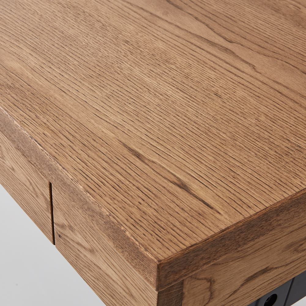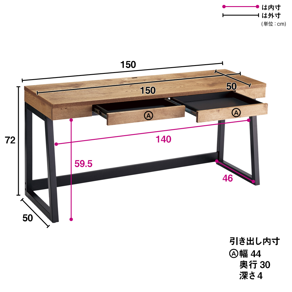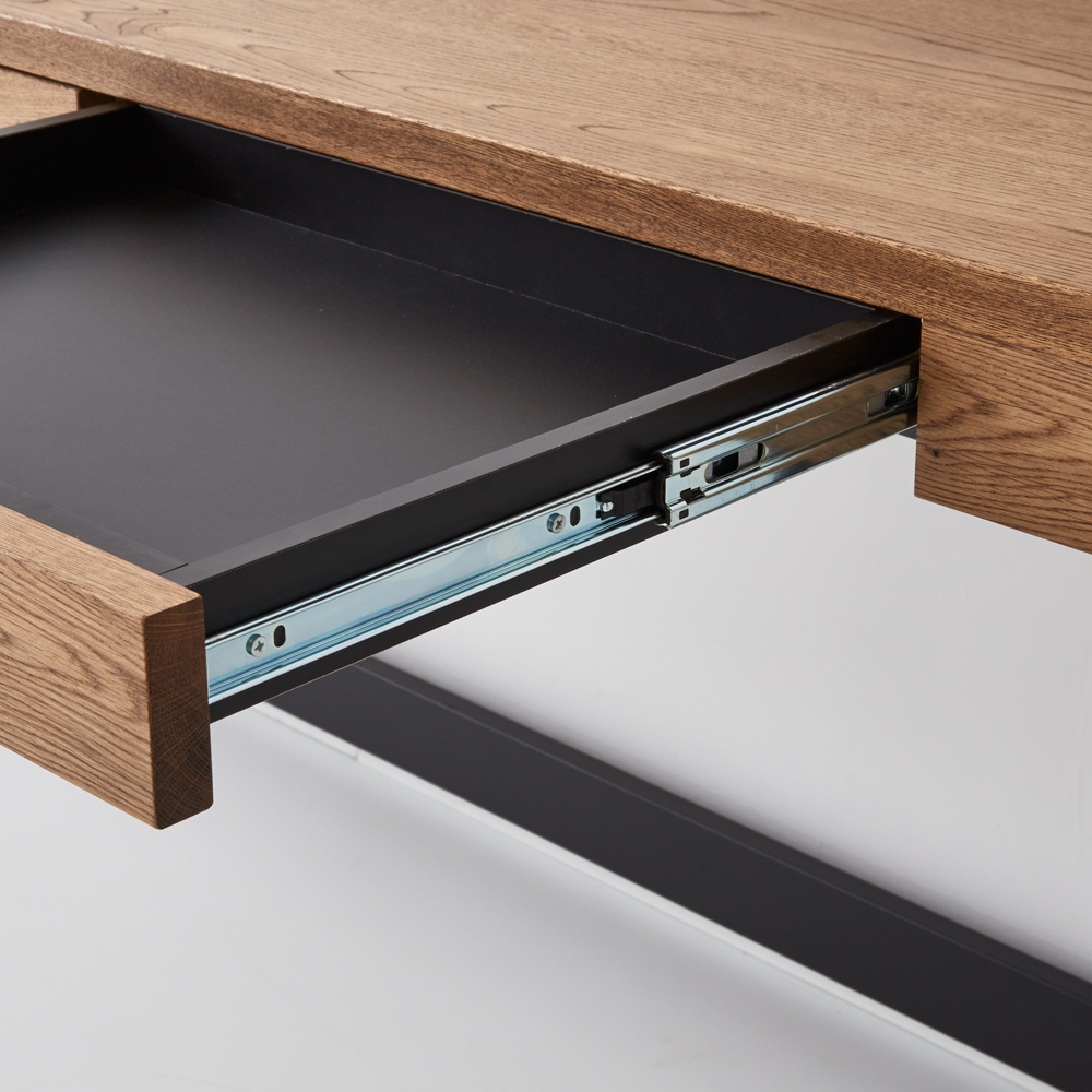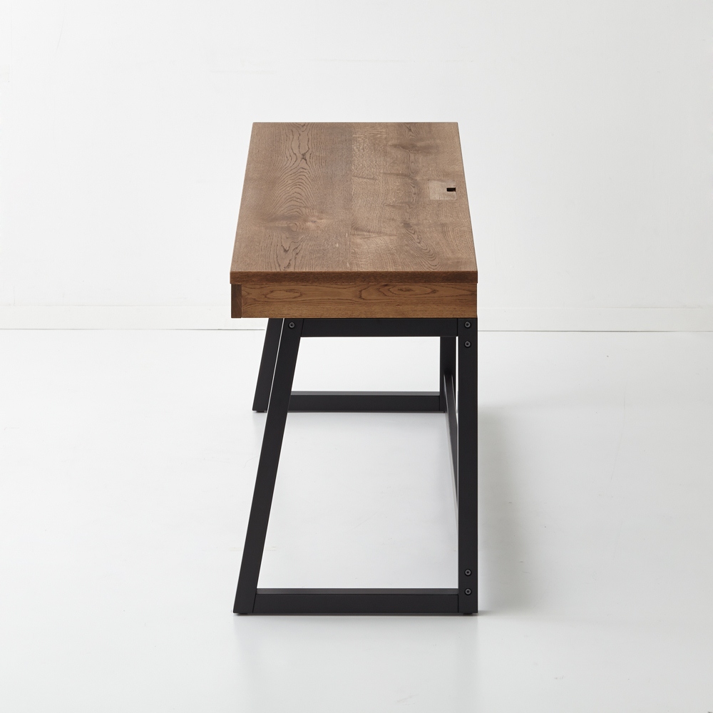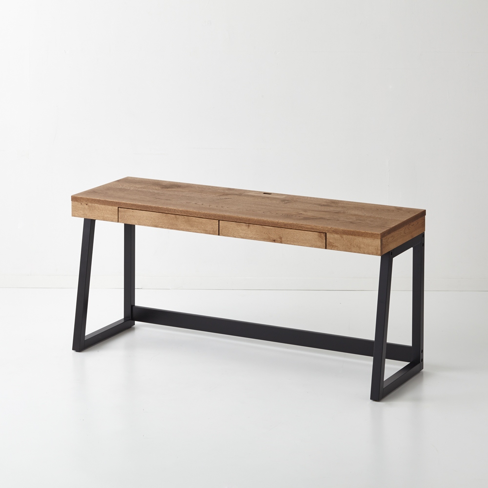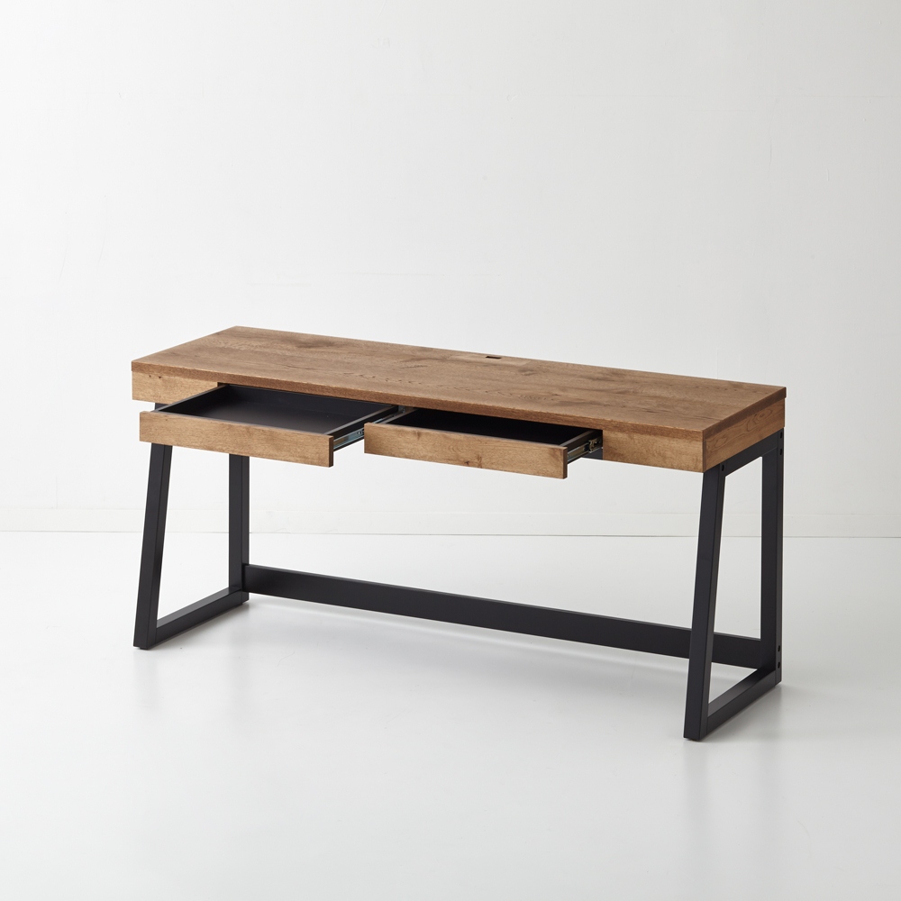 ナチュラルで風合い豊かな北海道産・ミズナラ材を使用したおしゃれなホームオフィスシリーズ。味わい深いミックススタイルが叶う机で自由でリラックス感のあるワークスペースを。素材感を活かしたラフ&リラックスホームオフィスのインテリアを、もっとおしゃれでファッショナブルなものに。そんな想いを込めた、本格派ワークデスクの登場です。デスク天板には、北海道産のミズナラ材を採用し、素材の自然のままの風合いを活かしました。脚部には、うっすらと木目を残したブラック塗装を施し、流行を取り入れたMIXスタイルに。スタイリッシュなレッグデザインも相まって、個性的で存在感のある、オシャレなPCデスクが誕生しました。Brook(ブルック) ウッドデスクシリーズで、自由でリラックス感のあるワークスペースをお楽しみください。【ミズナラ天然木について】主に北海道で採れるミズナラは、厳しい環境に耐えて育つため、特にきめ細やかで木目の美しさで知られています。硬度が高く重厚感に優れた素材であるため、高級家具材や建築材、さらにはウイスキー樽としても使用されます。上記の理由から国際的にも評価が高いものの、大木に成長するのに時間がかかること、もともとの生育量が少ないことから市場に出回る量が少なく希少材になっています。〜素材と機能〜◆パソコンデスクの天板には、古くから船や高級家具の素材として使われてきた、丈夫な北海道産のミズナラ材を採用。◆自然のままの節やミズナラ特有の「ふ」の部分も使うことで、より自然の風合いを感じられるようになっています。◆机の奥中央には配線穴があり、その下にはコンセントタップ収納スペースがあるのでコード類もスッキリ。◆引き出しはストッパー付きのスライドレールで、開閉や出し入れもラクラクです。◆格調高いたたずまいは、書斎からリビングやダイニング、ベッドルームまで幅広いシーンで活躍します。◆優れた素材&国内の職人による丁寧な仕上げは、子どもの学習机としてもおすすめ。◆脚部の取り付けのみの組み立てで、すぐにお使いいただけるのもポイントの1つです。◆シリーズには、デスク・サイドチェスト・プリンターワゴンをラインナップしています。◆机の幅サイズが、120cm・150cm・そして180cmまである、豊富なバリエーションも魅力です。
