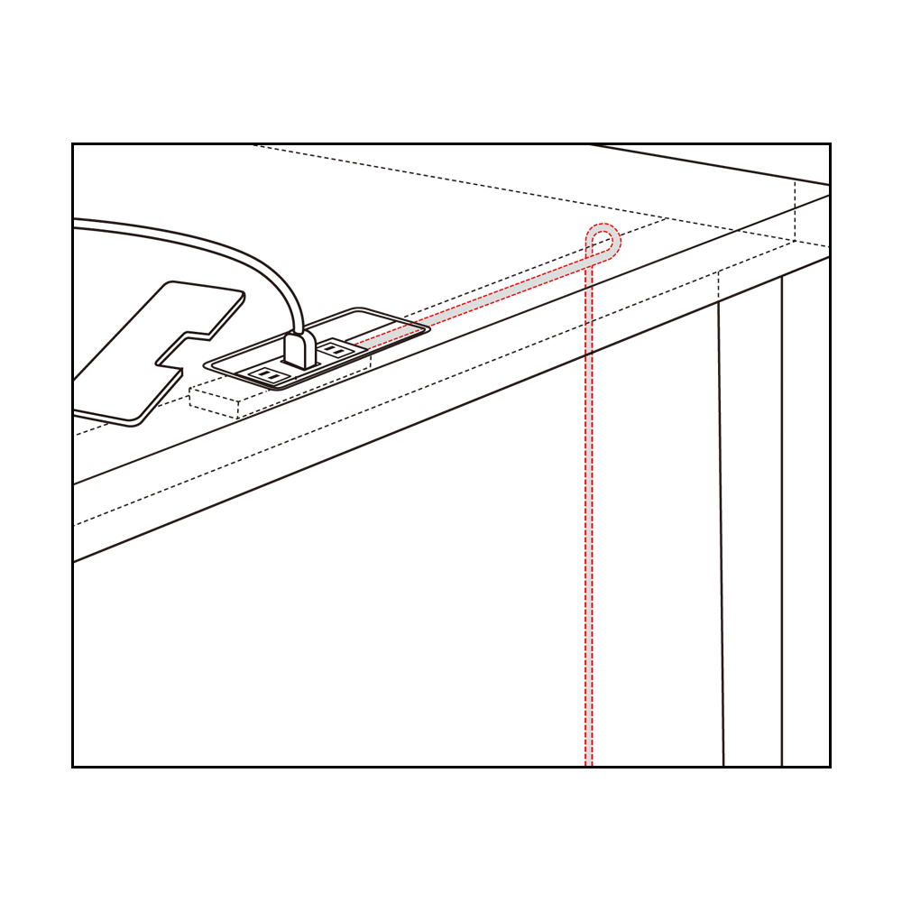 デスク背面からのイラスト コード類は、デスク天板奥のスペースに。