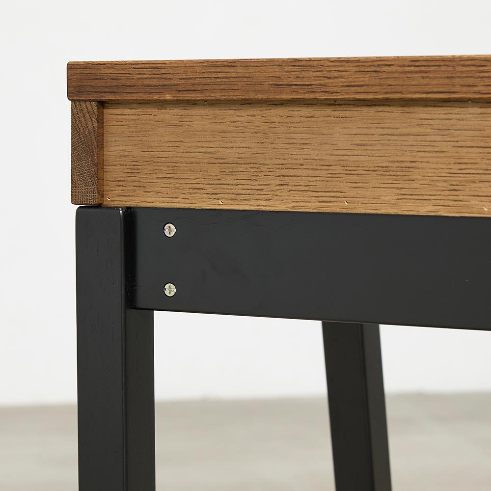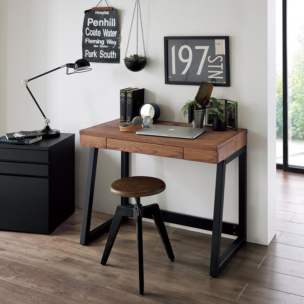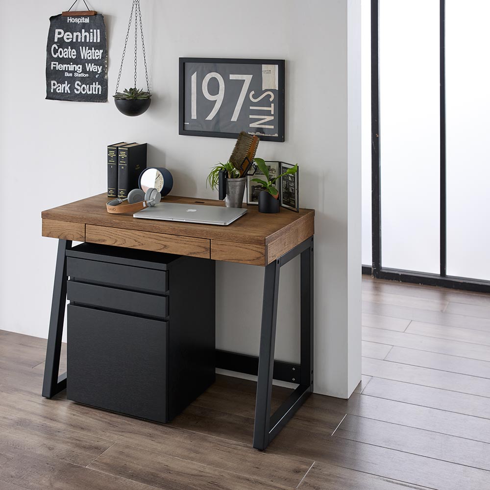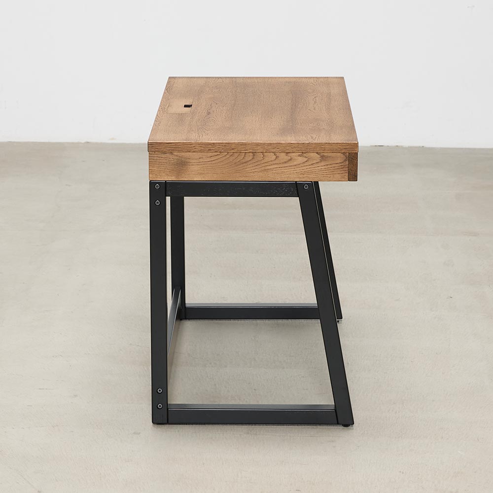 ナチュラルで風合い豊かな北海道産・ミズナラ材を使用したおしゃれなホームオフィスシリーズ。味わい深いミックススタイルが叶う机で自由でリラックス感のあるワークスペースを。素材感を活かしたラフ&リラックスホームオフィスのインテリアを、もっとおしゃれでファッショナブルなものに。そんな想いを込めた、本格派ワークデスクの登場です。デスク天板には、北海道産のミズナラ材を採用し、素材の自然のままの風合いを活かしました。脚部には、うっすらと木目を残したブラック塗装を施し、流行を取り入れたMIXスタイルに。スタイリッシュなレッグデザインも相まって、個性的で存在感のある、オシャレなPCデスクが誕生しました。Brook(ブルック) ウッドデスクシリーズで、自由でリラックス感のあるワークスペースをお楽しみください。【ミズナラ天然木について】主に北海道で採れるミズナラは、厳しい環境に耐えて育つため、特にきめ細やかで木目の美しさで知られています。硬度が高く重厚感に優れた素材であるため、高級家具材や建築材、さらにはウイスキー樽としても使用されます。上記の理由から国際的にも評価が高いものの、大木に成長するのに時間がかかること、もともとの生育量が少ないことから市場に出回る量が少なく希少材になっています。〜素材と機能〜◆パソコンデスクの天板には、古くから船や高級家具の素材として使われてきた、丈夫な北海道産のミズナラ材を採用。◆自然のままの節やミズナラ特有の「ふ」の部分も使うことで、より自然の風合いを感じられるようになっています。◆机の奥中央には配線穴があり、その下にはコンセントタップ収納スペースがあるのでコード類もスッキリ。◆引き出しはストッパー付きのスライドレールで、開閉や出し入れもラクラクです。◆格調高いたたずまいは、書斎からリビングやダイニング、ベッドルームまで幅広いシーンで活躍します。◆優れた素材&国内の職人による丁寧な仕上げは、子どもの学習机としてもおすすめ。◆脚部の取り付けのみの組み立てで、すぐにお使いいただけるのもポイントの1つです。◆机の幅サイズが、120cm・150cm・そして180cmまである、豊富なバリエーションも魅力です。◆シリーズには、デスク・サイドチェスト・プリンターワゴンをラインナップしています。