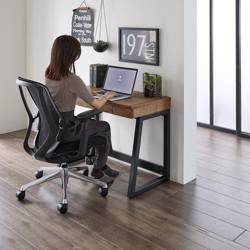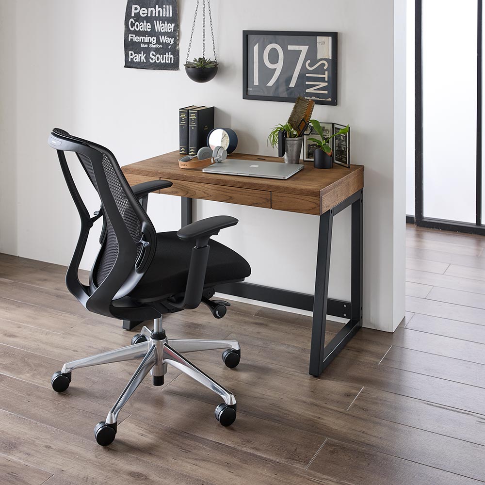 オフィスチェアと合わせても様になる見た目にもスマートなデスクです。(お届けはデスクのみです)