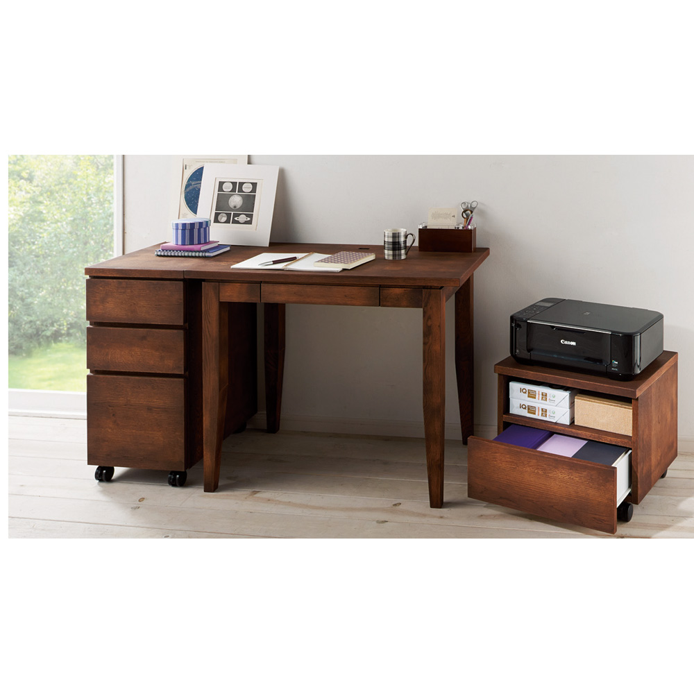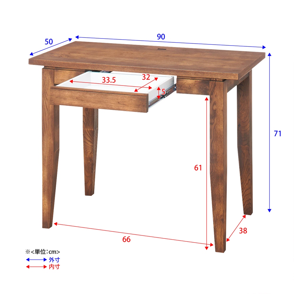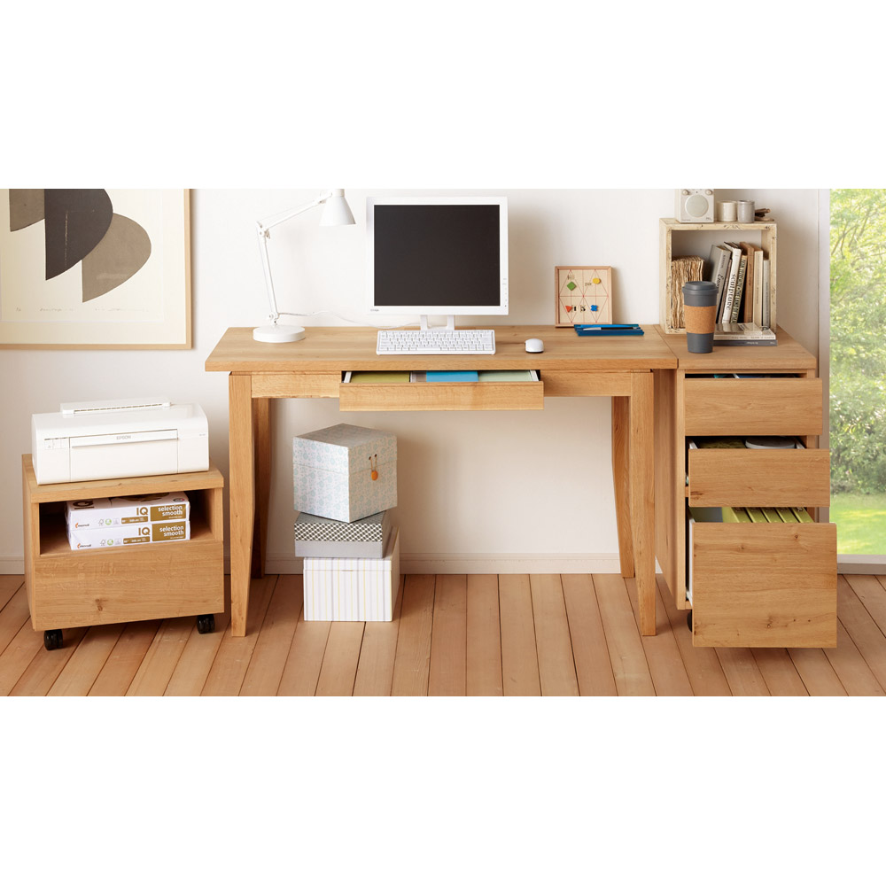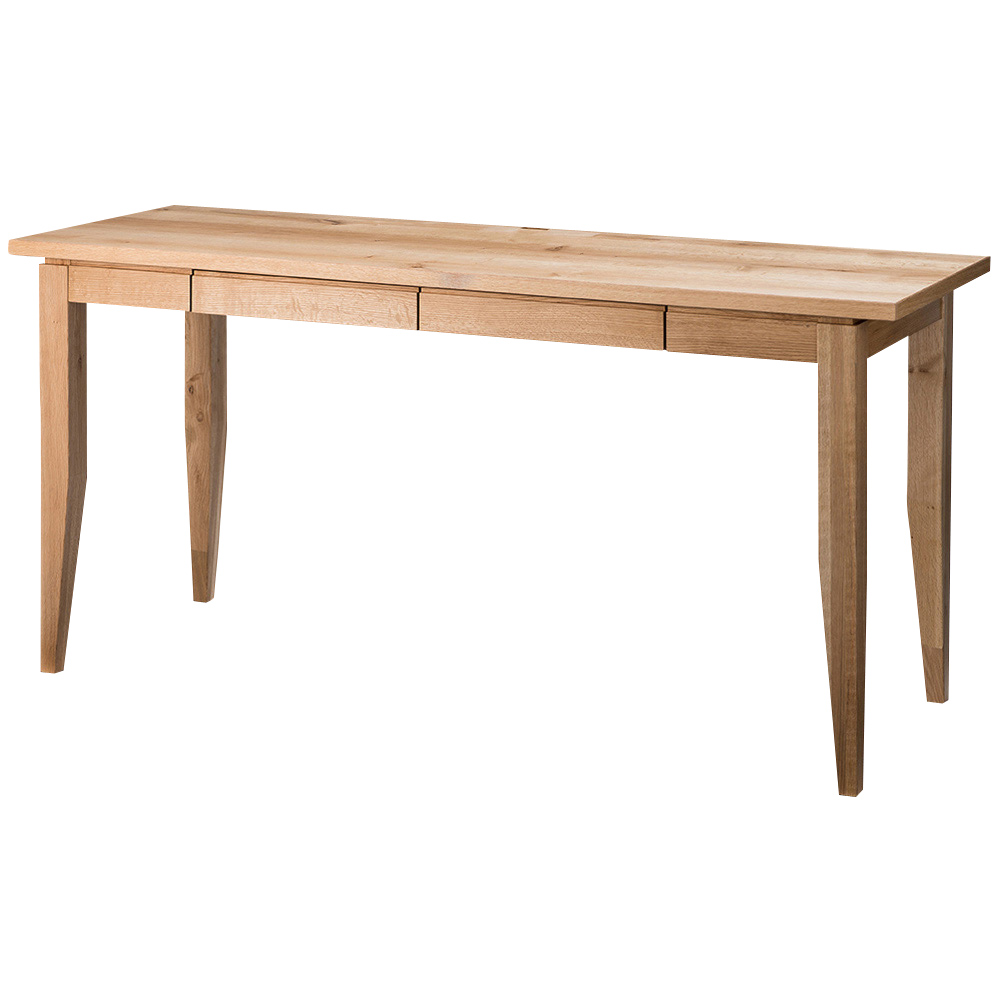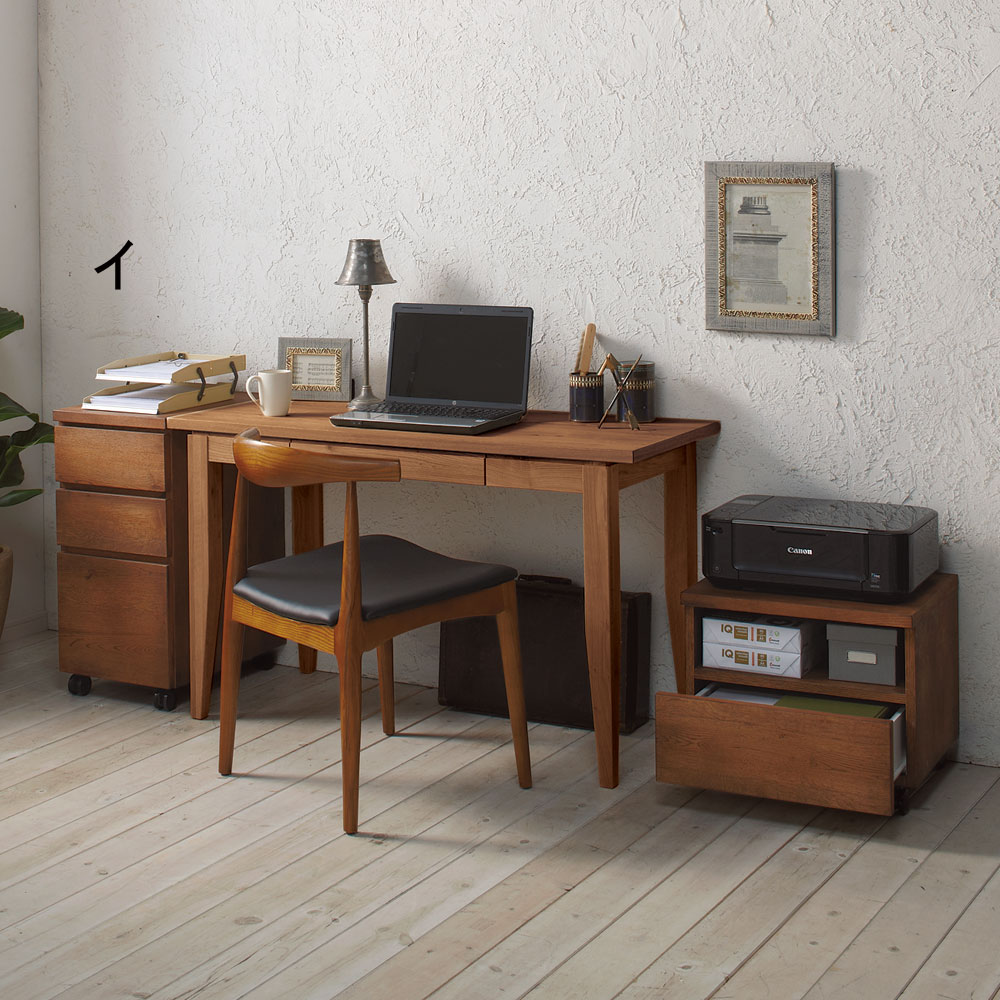 北海道産のオークを使用した、味わい深いPCデスクシリーズ。オーク材特有の風合いが醸し出す自然の素材感。使い込むほどに味わいが増し、時と共に愛着も深まる独特の経年変化も魅力。テレワーク・リモートワーク・勉強机としてもおすすめです。希少性のある北海道産のオーク材を贅沢に使用◆古くから船や高級家具の素材として使われてきた、丈夫な北海道産のオーク材(無垢材・突板)を採用し、たたずまいが美しい、おしゃれな木製パソコンデスクが生まれました。◆自然のままの節やオーク材特有のふの部分も使うことで、より自然の風合いを醸し出しています。◆どこか懐かしいナチュラルな北欧風のデザインは、インテリアとしてもおしゃれな印象のワークデスク。◆天板には配線穴があり、天板下にはコンセントタップ収納スペースがあるので、ごちゃつきがちなコード類もスッキリさせることができます。◆引き出しは内部化粧されて清潔感があり、スライドレール付きなので開閉や出し入れもラクラクです。◆格調高いたたずまいは、書斎からリビングやダイニング、ベッドルームまで幅広いシーンで活躍します。◆優れた素材&国内の職人による丁寧な仕上げは、子どものリビング学習机としてもおすすめ。◆脚部の取り付けのみの組み立てで、すぐにお使いいただけるのもポイントの1つです。◆シリーズにはデスク奥行50cm・デスク奥行70cm・サイドチェスト・プリンターワゴンをラインナップしています。