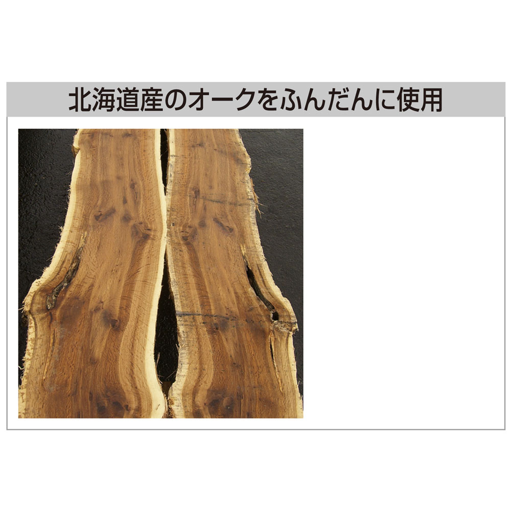 素材には、古くから船や高級家具の素材として使われてきた丈夫な木、北海道産のオーク材(楢材)を選定。間伐材を利用することで森林の保護にも貢献しています。