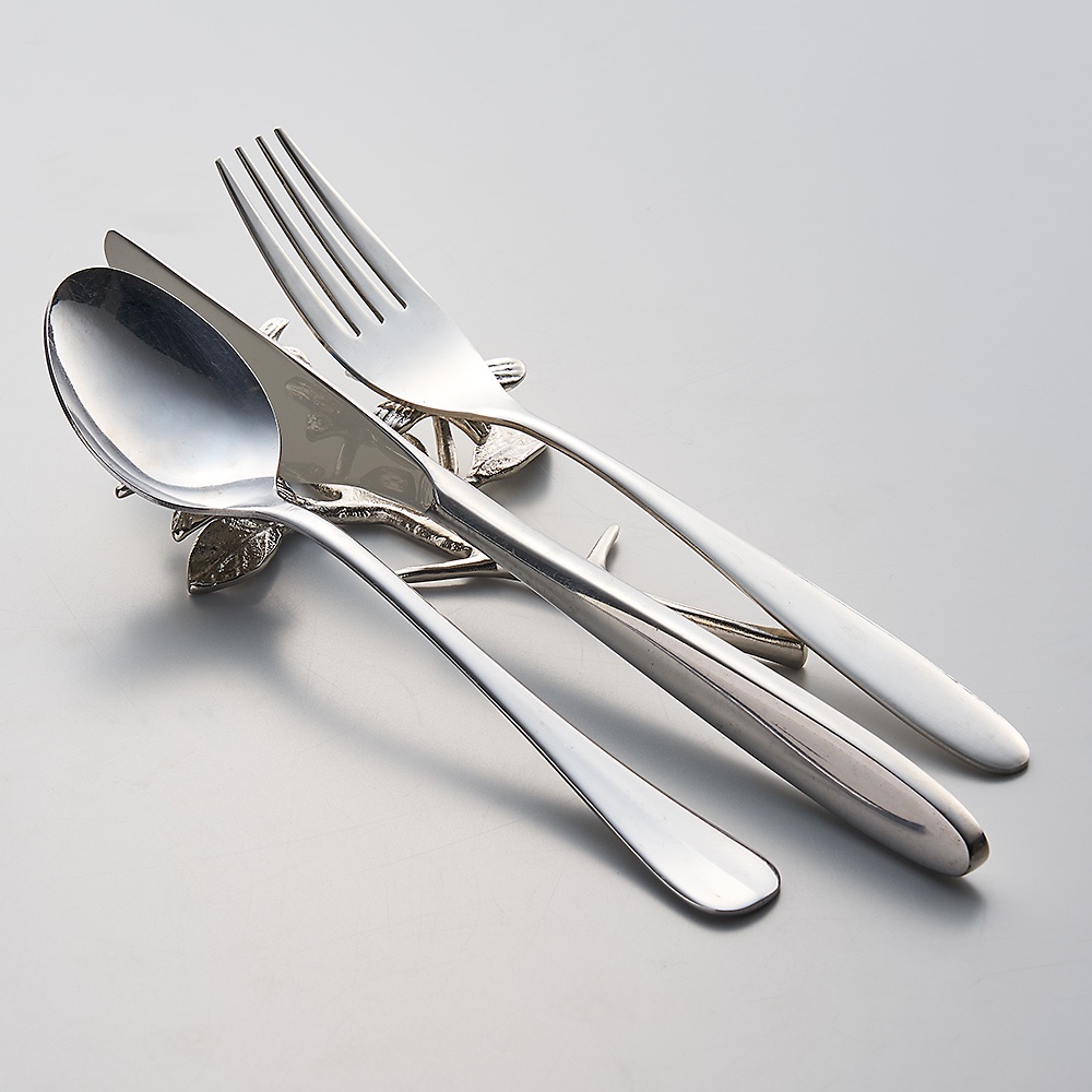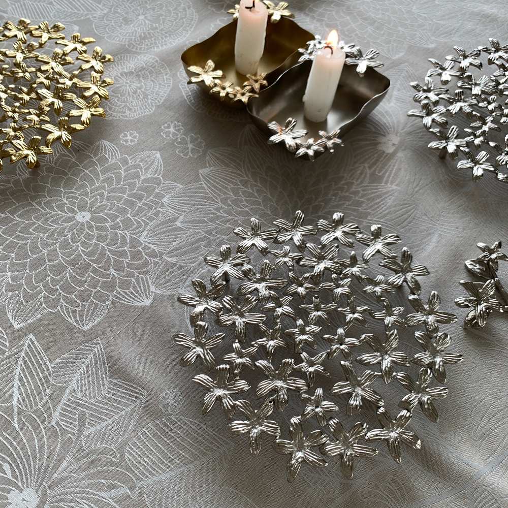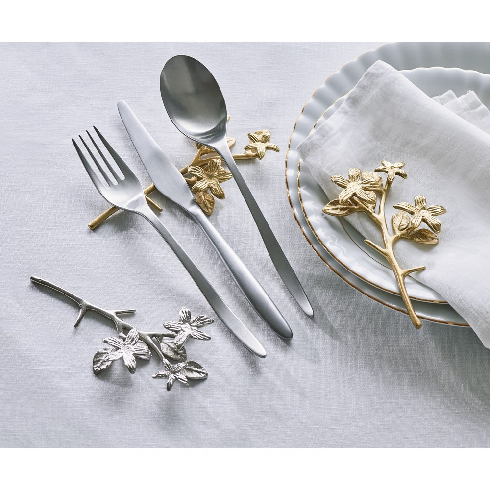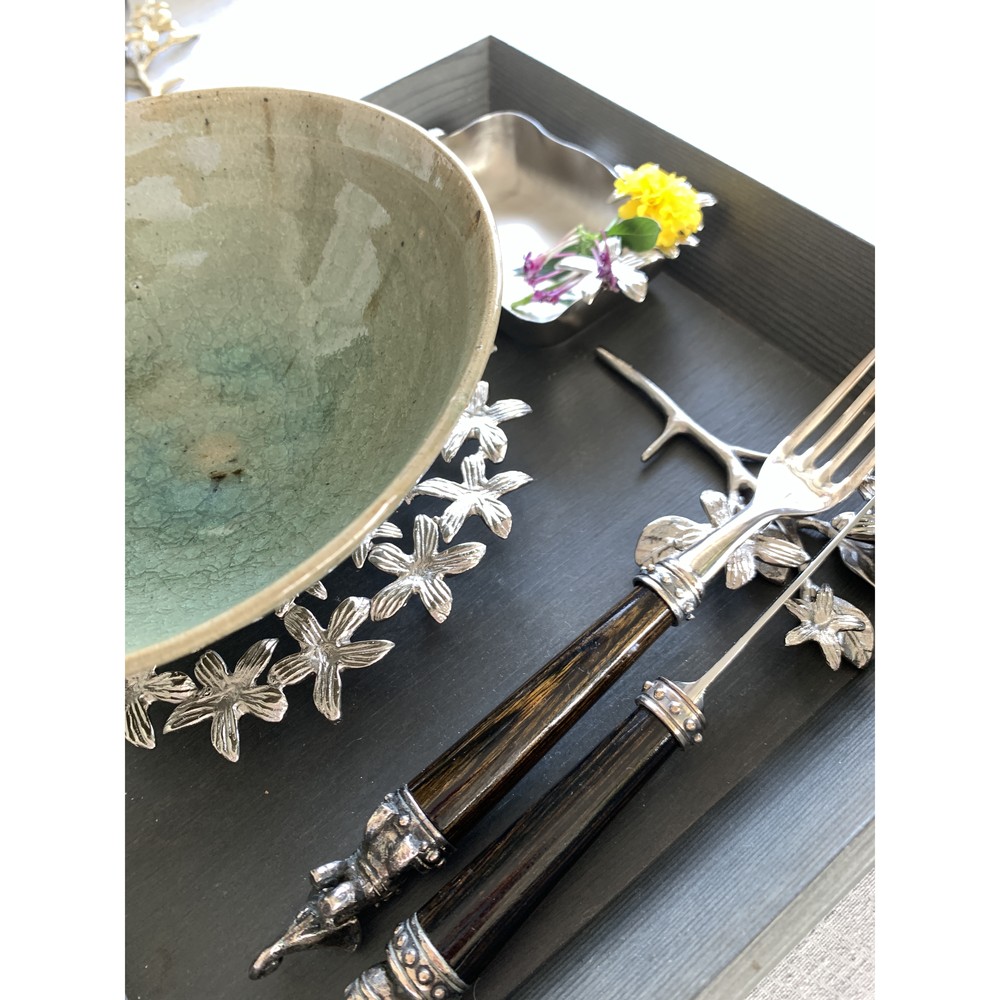 エレガントな食卓に、こだわりのカトラリーレストを。真鍮の上質な輝きが、テーブルを彩ります。上品で立体感のあるゴールドとシルバーのカトラリーレストで、食卓をよりエレガントに演出しましょう。箸置きにも。食卓を彩るエレガントなカトラリーレスト。真鍮の輝きが、大人の上質な時間を演出します。大人の女性に贈る、高級感あふれるカトラリーレストが登場!おもてなしや普段の卓上を華やかに、エレガントに演出するジュエリーのように美しい真鍮製(しんちゅう)のゴールドとシルバーのカトラリーレストです。真鍮素材を使用し、熟練の職人が手作業で仕上げたものです。立体感のあるエレガントなデザインで上質な輝きを放ちます。洗練された大人のテーブルにふさわしいゴールドとシルバーの2色展開で、お好みの組み合わせでテーブルを演出することができます。置くだけでテーブルをパっと華やかに彩るカトラリーレスト立体的な花と花の間にナイフを立ててセットできる仕様になっています。カトラリーレストを縦にしても横にしてもナイフは立てられるのでご自由にお試しください。スプーンやフォークだけでも綺麗にご使用いただけます。茎の部分を使えば箸も置けます。Adhya Designアドヤデザインは、インド発の金属工芸品メーカー。熟練の職人による手作業で作られた商品はとてもモダンで繊細で、欧米で大変人気のブランドです。