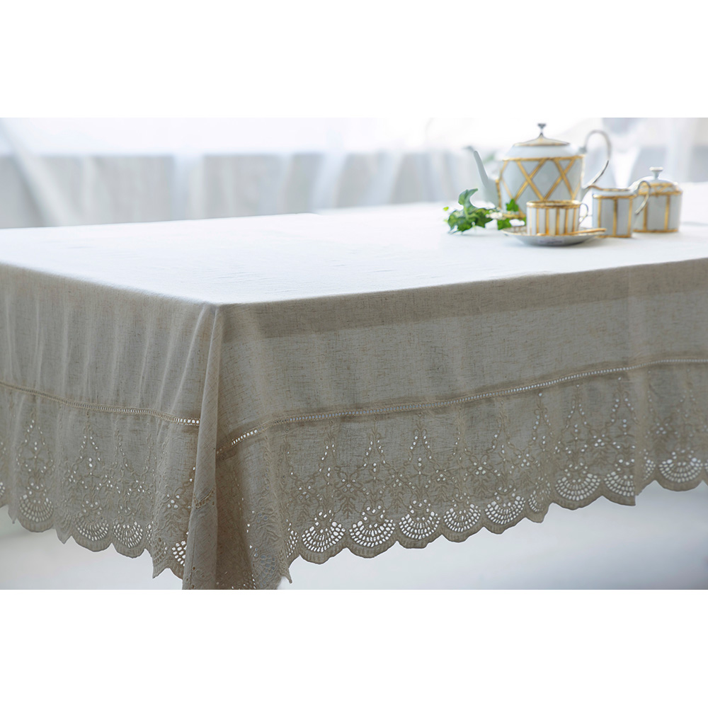 パリ風の上品なくすみカラーとレースが魅力の麻混素材のテーブルクロス。撥水加工でお手入れ簡単、おしゃれな食卓を叶えます。パリのアパルトマンを思わせるテーブルクロス南フランスのカフェのようなナチュラルカラーとニュアンスのあるグレーが特徴。麻を使用したテーブルクロスは、やさしい色合いでお部屋の雰囲気を上品に変え、大人のリラックスタイムを演出します。撥水加工で、美しさと機能性を両立繊細なカラーでも撥水仕様だから水や汚れがしみにくく、毎日の家事やおもてなしにも安心。麻混の自然素材と機能性を兼ね備え、暮らしに寄り添います。上品なレースがエレガントな食卓に縁には控えめで繊細なレースをプラス。主張しすぎず、さりげない華やかさでテーブルを格上げ。普段の食卓やお友達とのランチ、ホームパーティーにもぴったりです。自分らしく楽しむナチュラルシャビースタイルお気に入りのテーブルクロスをプラスするだけで、毎日の空間がパリのお部屋のようなときめきに変化。上質な素材とデザインで、自分だけの豊かな時間をお過ごしください。※素材の特性上、直射日光や照明など、強い光の下での長時間の使用・保管は色あせの原因となりますのでご注意ください。
