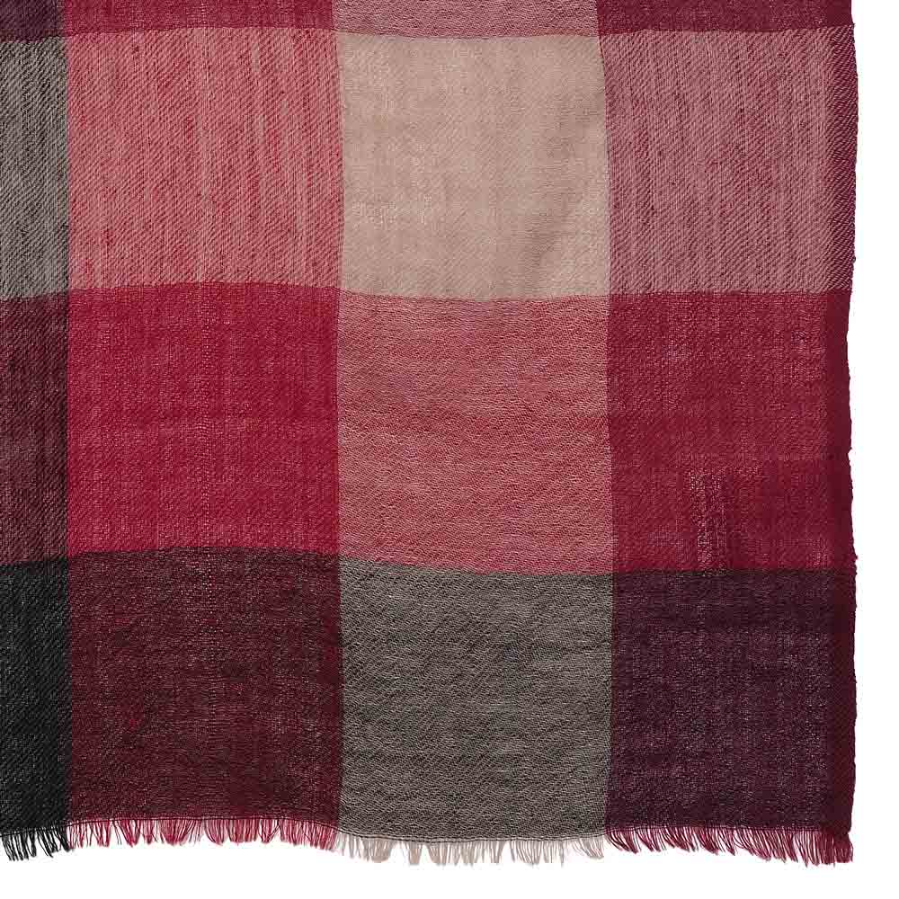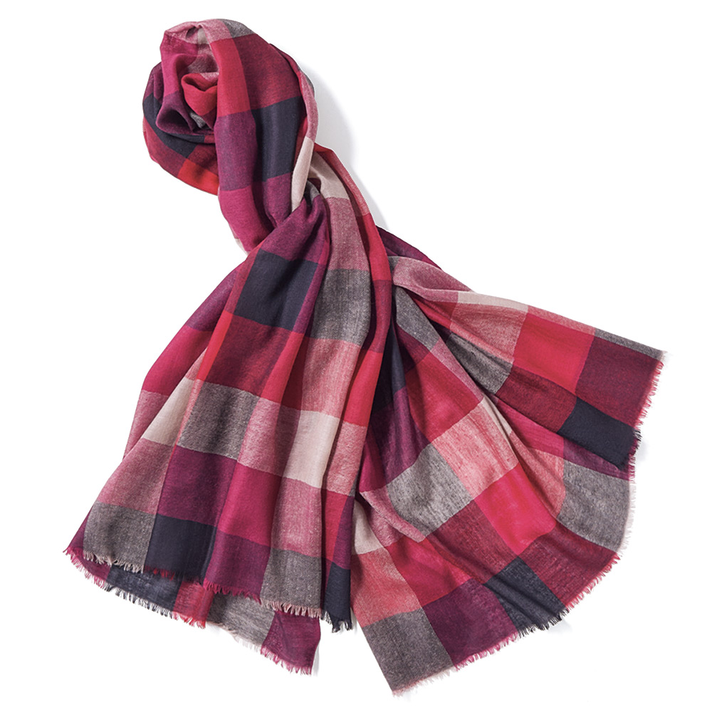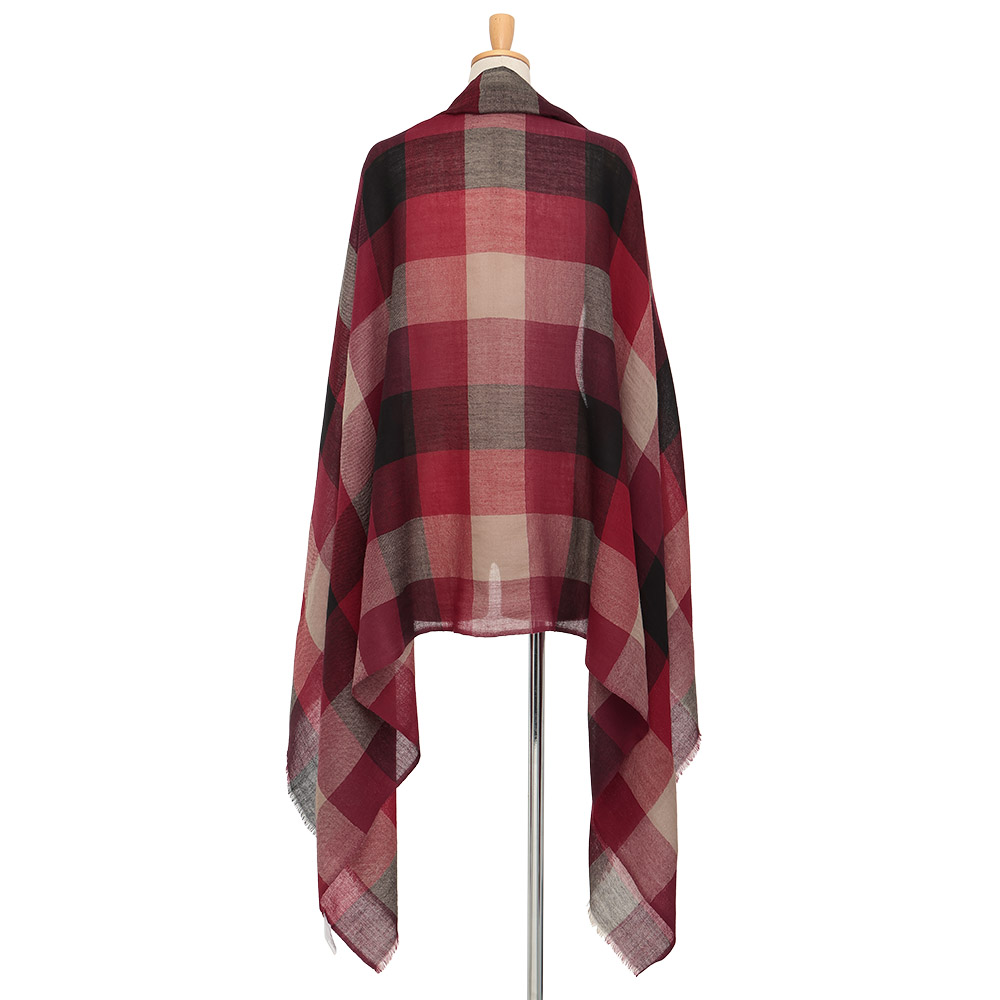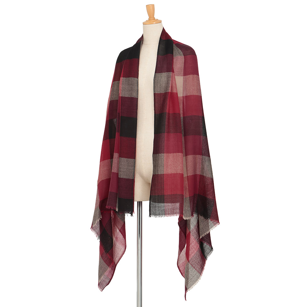 RICH CASUAL新基準で更新する、洒脱なスタイル。本物を知る大人にふさわしいのは、これ見よがしに華美な装いではなく、時代の息吹を軽やかに、肩肘張らない上質さを感じさせる最新カジュアル。ルビー色のブロックチェックをマントのように纏って。羽織ったり、首に巻いたりとアレンジが利く、インド「SURBHI」社の大判ストール。ウール100%のウォーミーなタッチが心地よく、やや透け感のある甘織りにすることで、秋から真冬、春まで長い期間、愛用していただけます。≫ POINT約100×180cmのたっぷりサイズ。自然な暖かみがあり、定番色×赤の配色もパッと華やぐ鮮やかさ。