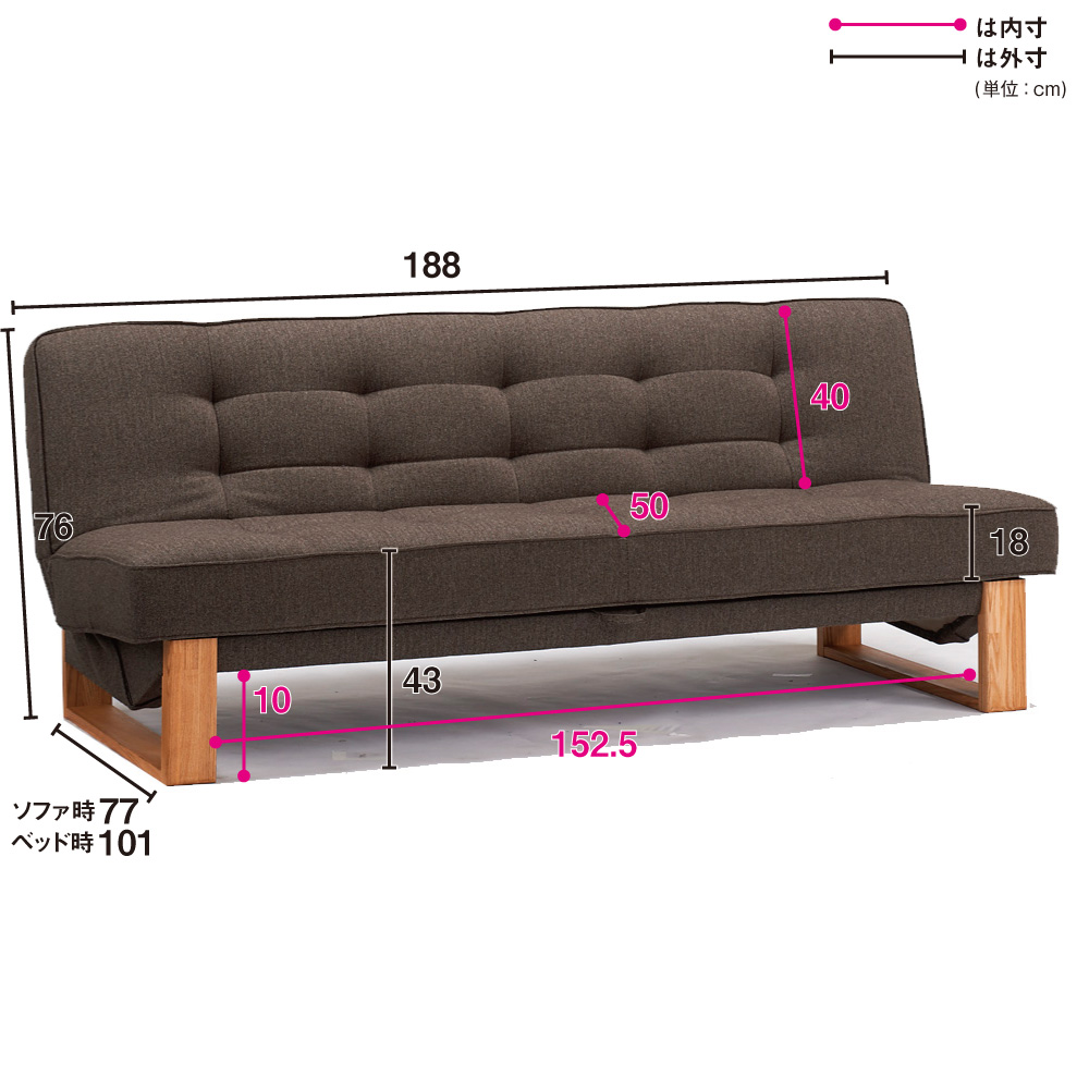 ソファーベッド作りの経験を積んだ国産メーカーが良質の素材を惜しみなく使い、特にベッドとしての快適さを重視したソファベットです。普段は寝心地の良いフラットベッド、来客時はおもてなしのソファに。普段は寝心地のよいフラットベッド、ゲストが訪ねてきたらおもてなしのソファに。一人暮らしの方やプライベートルームにぴったりのソファベッドです。ソファベッドづくりに戦前からの長い経験を持つ国産メーカーの製品で、良質の素材を惜しみなく使い、とくにベッドとしての快適さが重視されています。デザインはハイクオリティ。上品なグレード感を漂わせるヘリンボーン柄のツイード調の張り地を使用。脚はタモ天然木無垢材で、U字フォルムがさりげなく個性的。2つの素材がナチュラルに調和し、どんなインテリアにもしっくりとなじみます。ソファ時には座面が5度の角度で奥に傾斜し、ソファとしての座り心地にもこだわっています。背もたれにもほどよい傾斜があり、ゆったり体を預けたくつろぎポジションを届けるとともに、高さを抑えてお部屋に設置時の圧迫感を和らげています。快適さにもこだわって、金属ウェーブスプリングとウレタンを使用。寝ても、座っても、沈み込みの少ないしっかりとしたホールド感です。<ソファ→ベッド>座部を手前に引くことでベッドスタイルに変ります。<ベッド→ソファ>背部側を持ち上げることでソファに変ります。ソファベッドについてソファにも、ベッドにもなるのがソファベッド。ゲストルームのエクストラベッドとして。お迎えしたお客様は格上のおもてなしと感じてもらえることでしょう。ワンルームのメインベッドとして。普段はベッドとして使っていても、日中、特に来客時にはソファにして。生活感丸出しの寝室を見せることなく、グッドデザインのソファのあるお部屋にお客様をお迎えすることができます。リビングルームのマスターソファとしてのご使用ももちろんおすすめです。