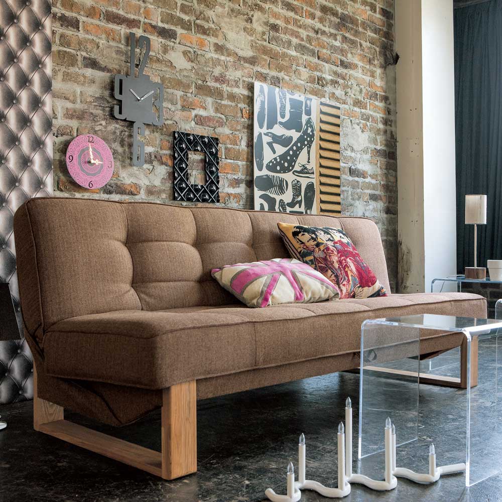 ソファ使用イメージ。縫製から、脚のデザインまで、細部にこだわった国産のソファベッド。