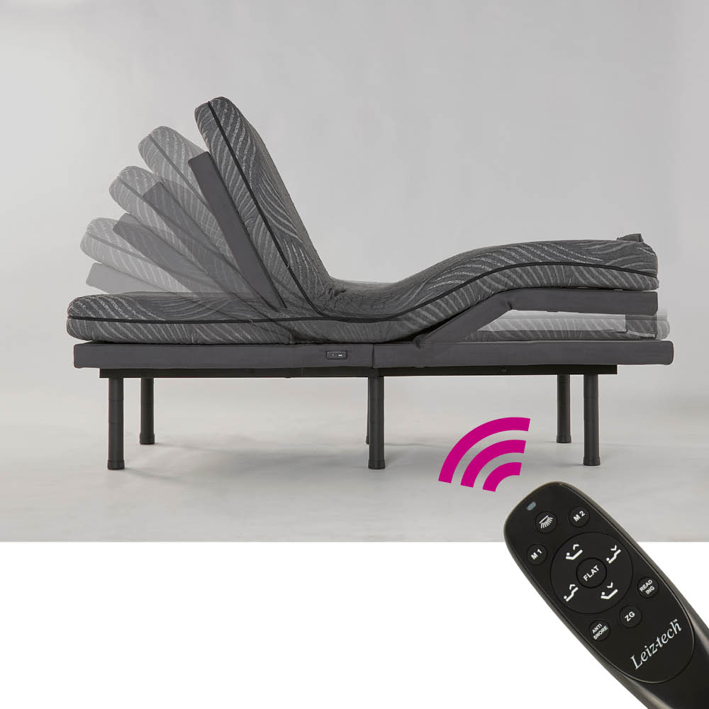 リモコン操作で、背もたれと脚部が別々に可動する電動式。電動式だから力もいらず、ベッドに寝たままワイヤレスリモコンでご自身のベストポジションにリクライニング。 ※写真はシングルサイズ・ウレタンマットレス