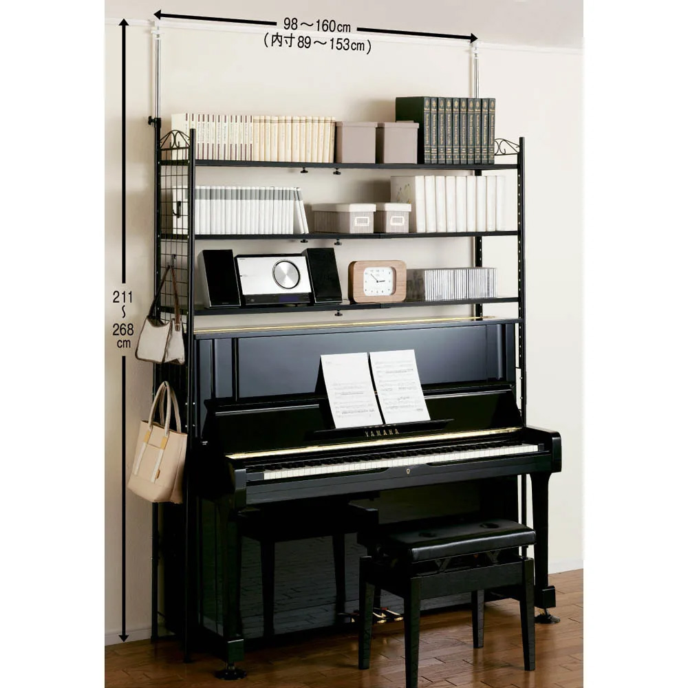 使用イメージ(ア)ブラック 幅が伸縮するので、お引っ越しや模様替えなどで生活環境が変わっても対応できます。 ※写真は別売りの3段タイプです。