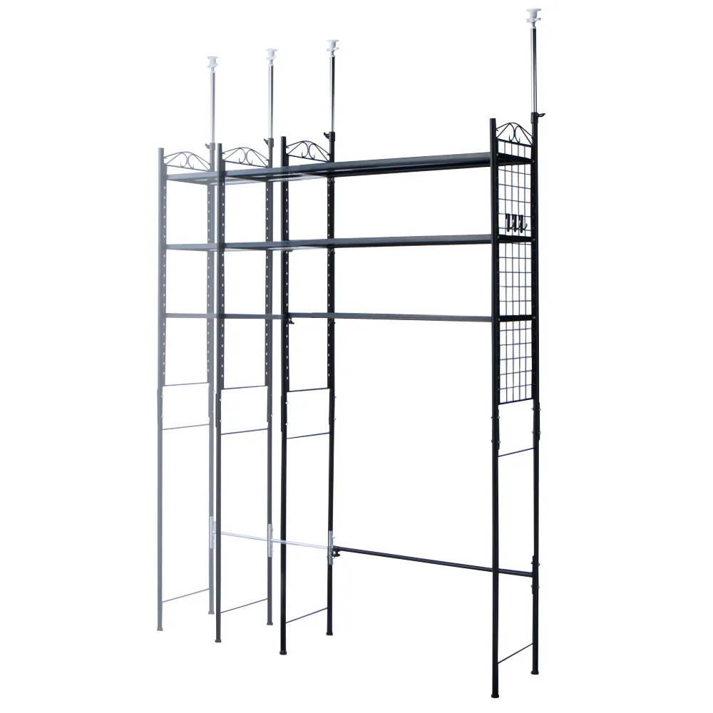 幅ぴったりを実現する伸縮機能。98cm〜160cmまでミリ単位で調整可能、隙間にジャストフィットします。 ※写真は同シリーズの突っ張りラック3段。お届けは 頑丈ラック 2段となります。