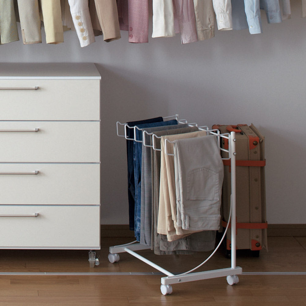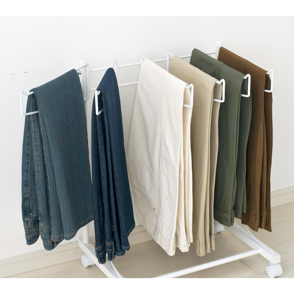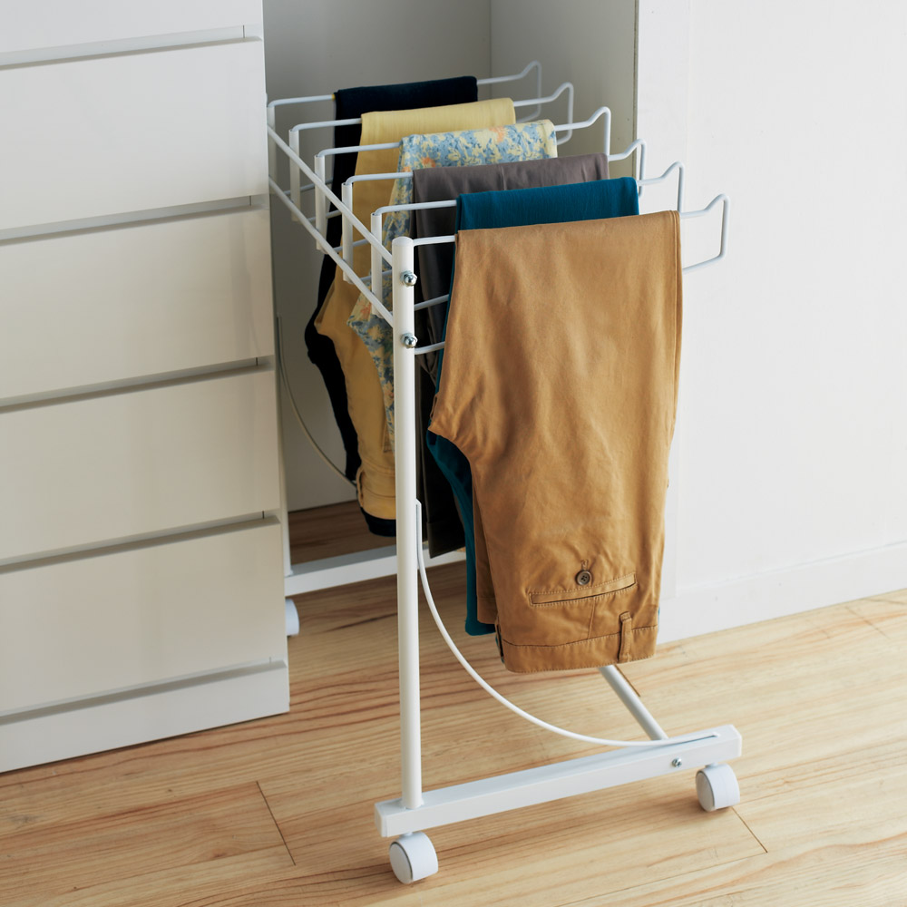 パンツをすっきり収納できる専用ハンガーラック。 薄型なのですき間に収めて縦にも使えます。(ア)ホワイト
