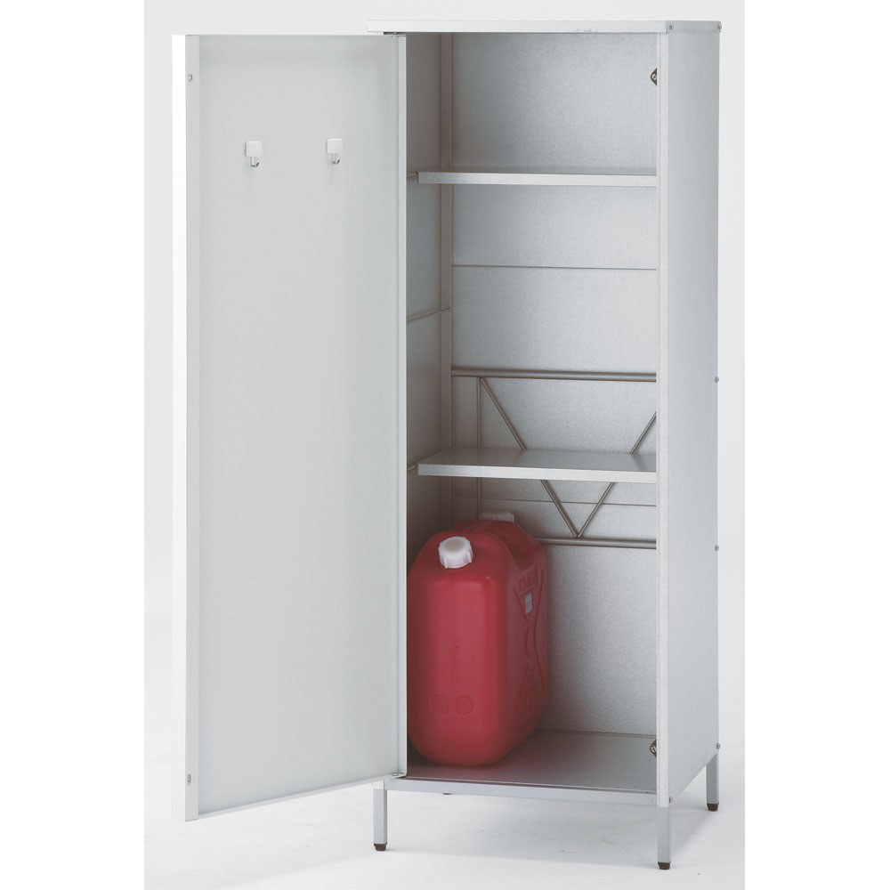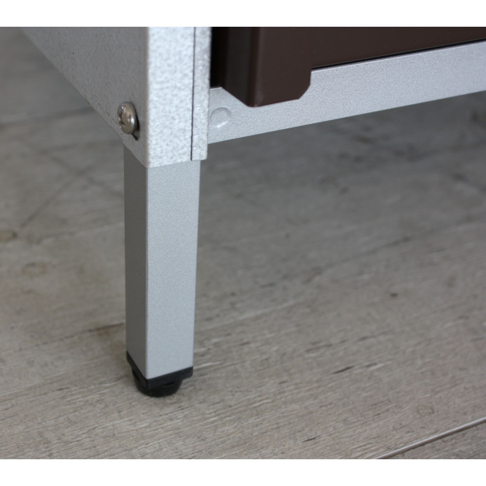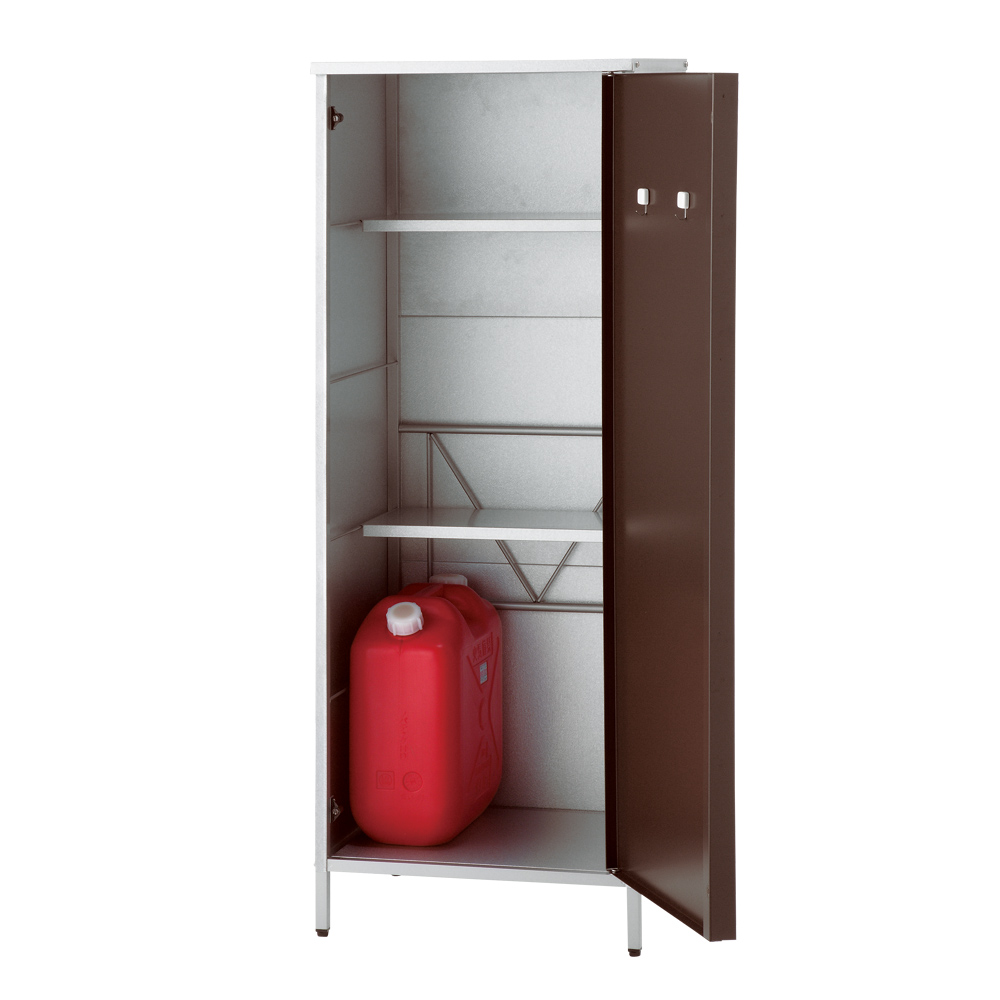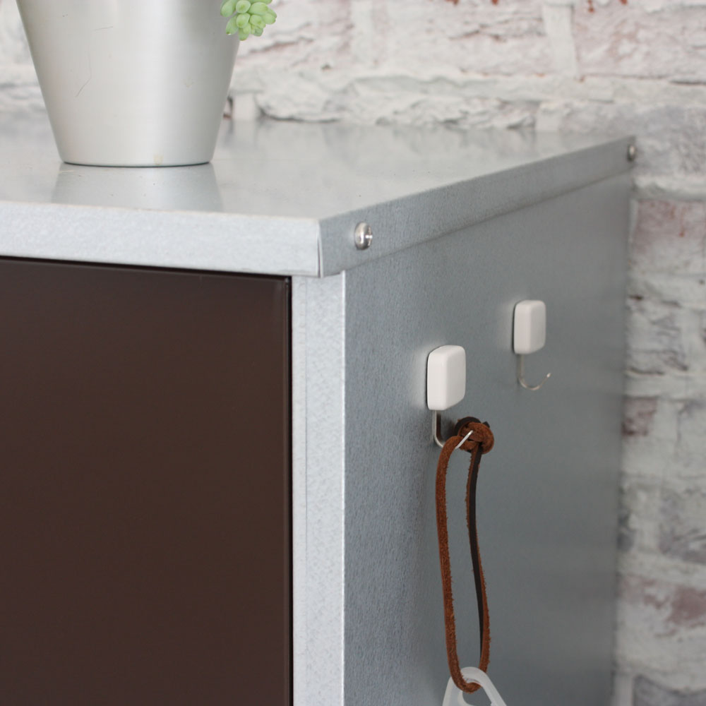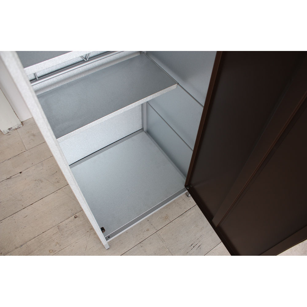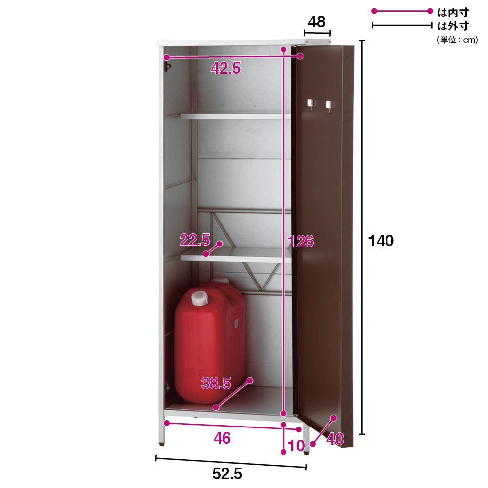 外壁にマッチするモダンなデザインの頑丈収納庫。丈夫なガルバリウム鋼板を使用しています。ベランダにもおすすめのスリムなデザインで掃除用品やガーデニング用品の収納に。◎外壁にマッチするモダンなデザインの収納庫◎・丈夫なガルバリウム鋼板を使用。・ベランダにもおすすめのスリムなデザイン。◎おうちの外観に素敵に溶け込むロッカー◎・家の外に置く物置は、意外とお隣から見えるものです。ここはひとつこだわりの品を。・お庭からベランダまで素敵に溶け込むロッカーです。モダンデザインの物置で、ゆとりの収納プランを。・物置の扉はダークブラウンとホワイトの2色をご用意。お庭のテイストに合わせてお選びください。◎収納力もしっかり◎・ポリタンクも収納できる、頼れる収納力も自慢です。・棚板は奥行きが浅めのつくり。棚板と扉の間にスペースがあるので、長い柄のものを収納することができます。・作業に必要なツールのほか、日用品のストックもすっきり収まる。定位置を決めれば探す手間が省け、作業効率がアップ!◎扉の開く向きを選べる◎・扉は左右開きどちらでも組み立て可。・限られたスペースでも使いやすい工夫のひとつです。◎タフな素材を使用◎・風雨にさらされる天板・側面には丈夫なガルバリウム鋼板を使用。◎機能面も充実◎・付属のマグネットフックで効率的に収納できます。・脚部には、設置時のガタツキを抑えるアジャスター付き。・足は高めの約10cm。収納庫下にサンダルなどの履物を収納できます。庫内の湿気対策にも。◎雨水が浸入しにくいつくり◎・上部は「ひさし」構造で、雨水の浸入を防ぎます。・天板は雨が入りにくい作りにしました。◎お庭づくりを支えるエクステリア収納◎・ガーデニング雑貨やベランダ用品もたっぷり収納できます。・設置場所や条件に合わせた物置き・収納庫をチョイスして、快適なエクステリアの収納プランを。【ガルバリウム鋼板】・アルミニウムを溶融した亜鉛合金メッキで表面処理し、耐久性・耐熱性と防食作用を兼ねそなえた鋼板です。【信頼と安心の国内工場での生産品】・管理の行き届いた日本国内の工場で、加工から製造、梱包に至るまで丁寧に仕上げました。・細部の丁寧な仕上がり、国産品ならではの品質は自信を持っておすすめします。※完全防水仕様ではございません。隙間から雨水が入る場合もあります。軒下や屋根のある場所でのご使用をお勧めしています。