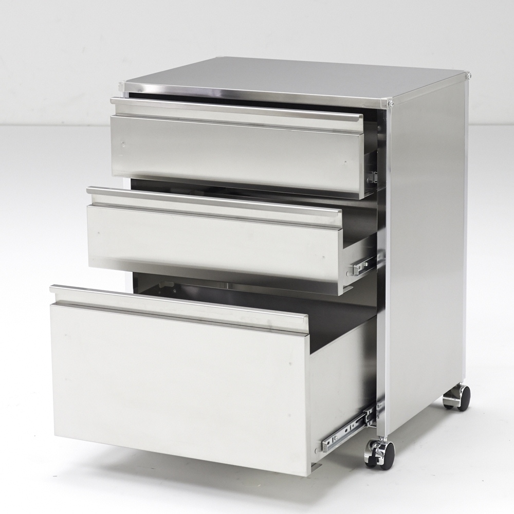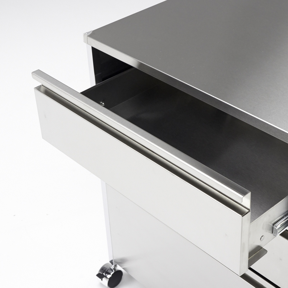 ステンレスは指紋や水の跡が目立たないヘアライン仕上げ。 ※写真のキャスターは旧タイプです。