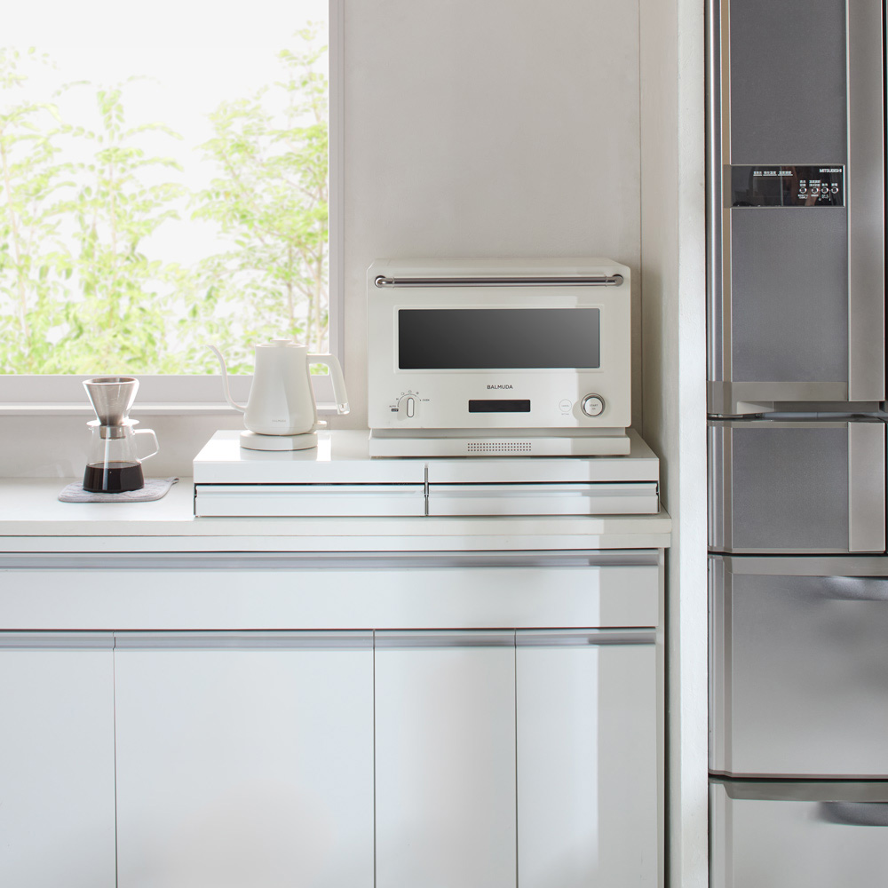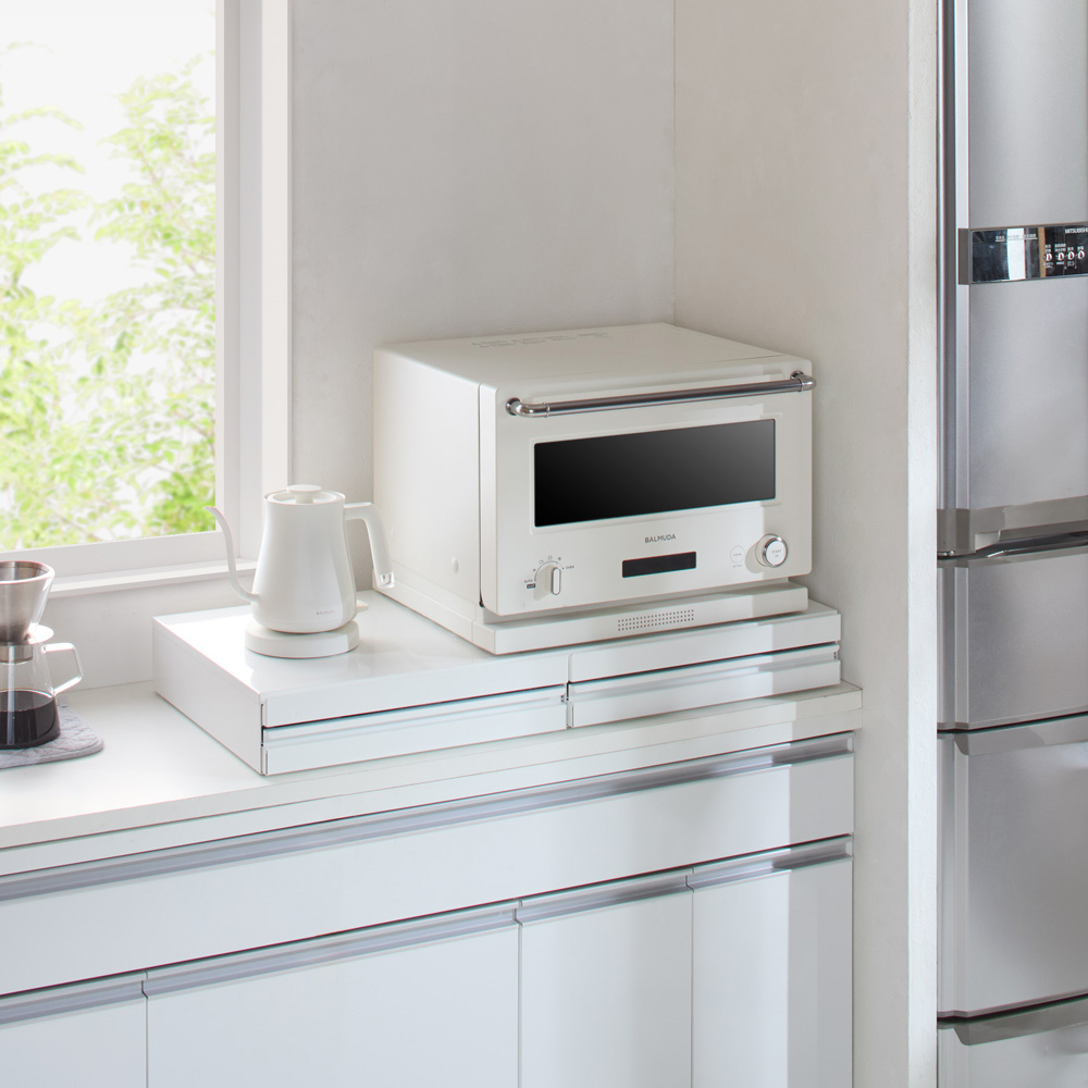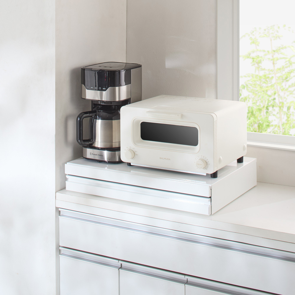 (ア)ホワイト 家電の下にちょい置きスペースがつくれるアイデア商品。天板耐荷重約30kgで電子レンジやトースター、炊飯器などを載せてご使用いただけます。 ※写真はお届けする商品です。