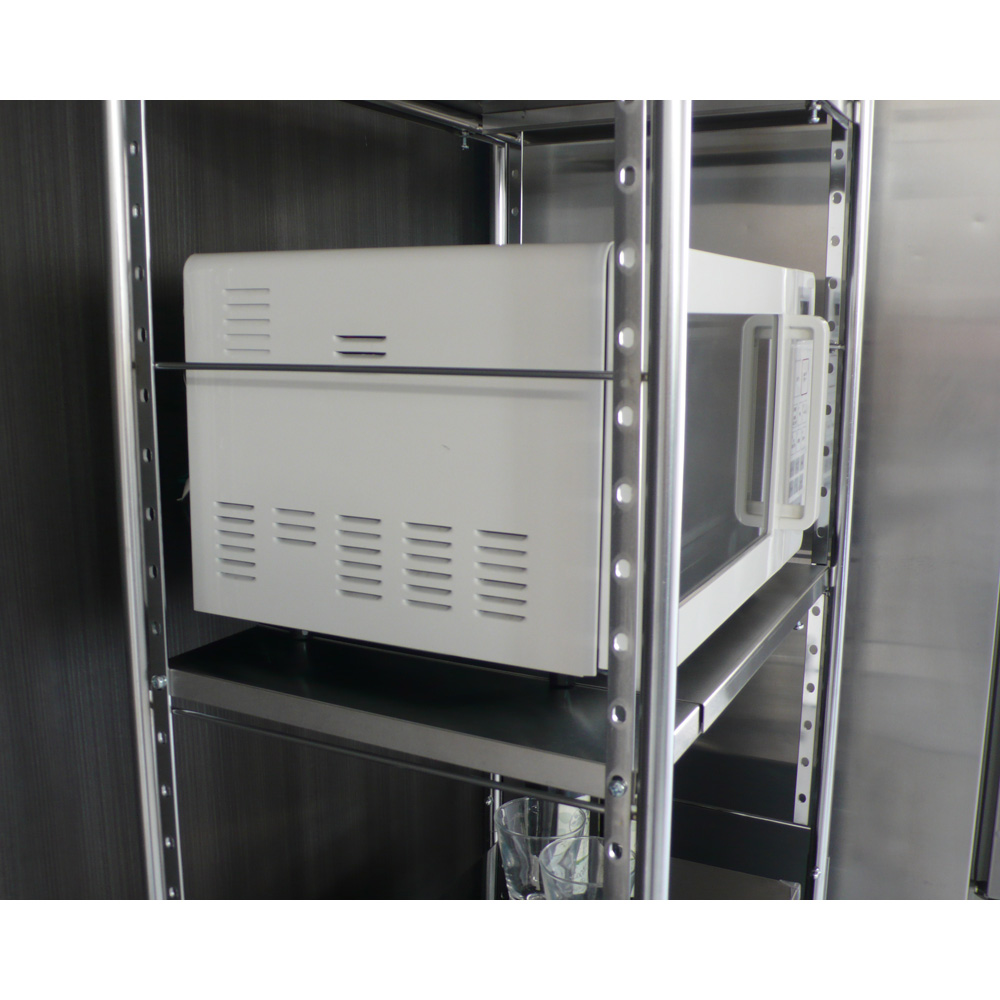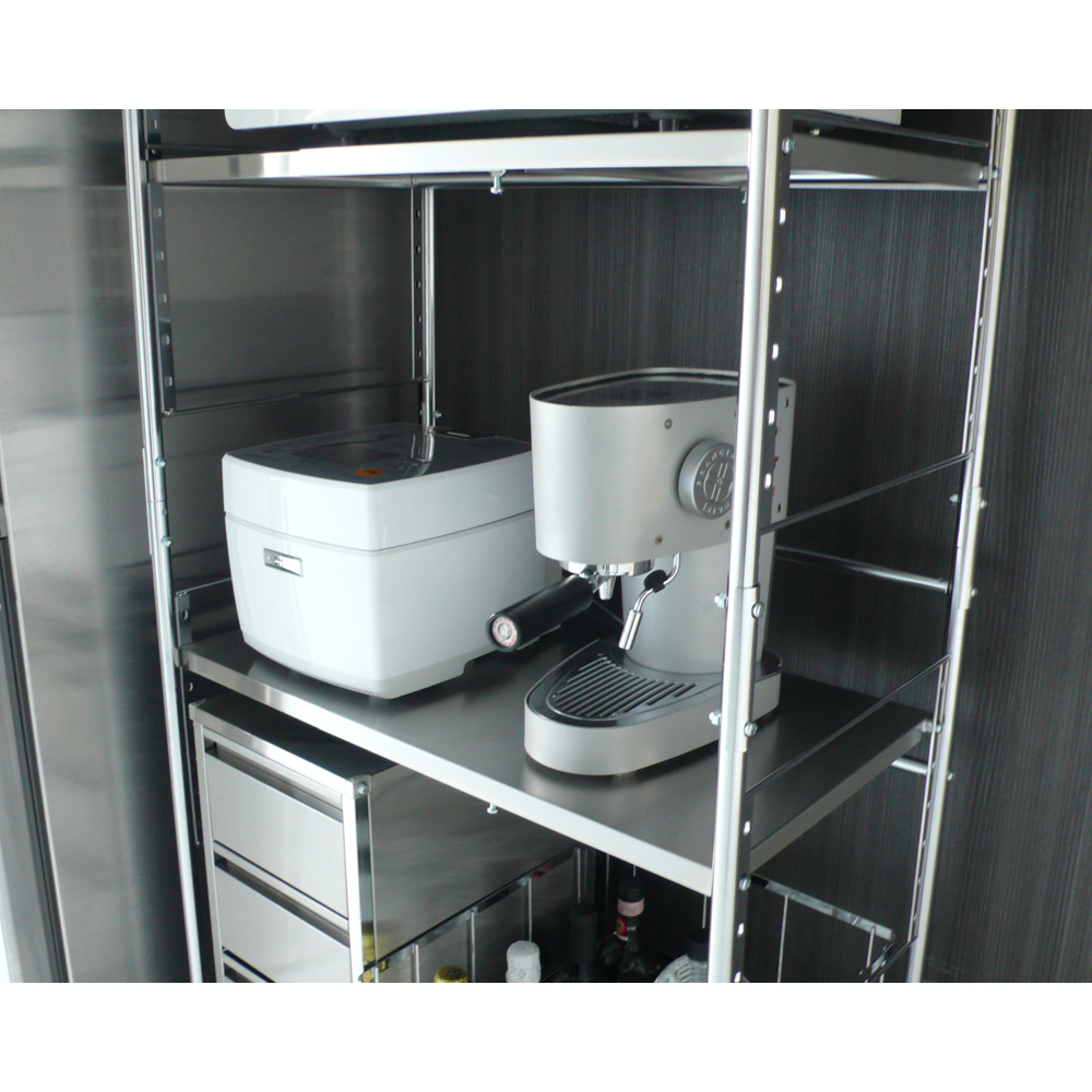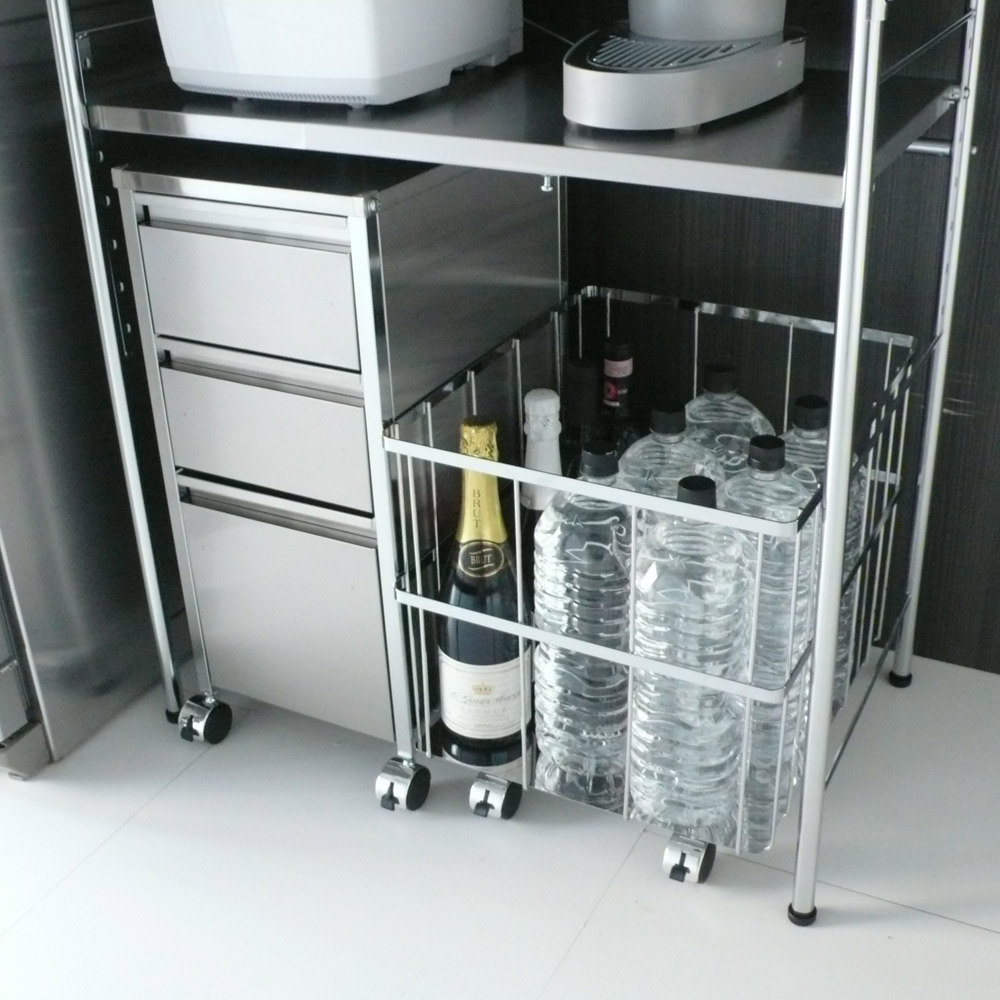 ステンレス製の棚板で、うっかり飲み物などをこぼしがちなコーヒーメーカの設置も安心。