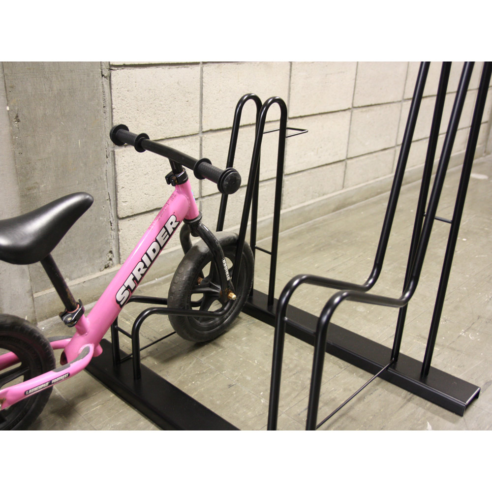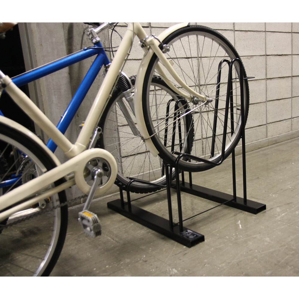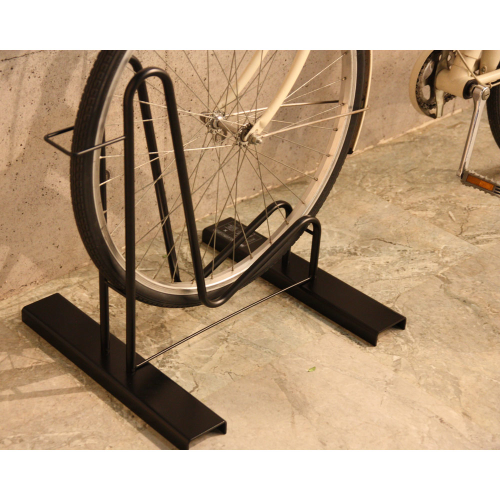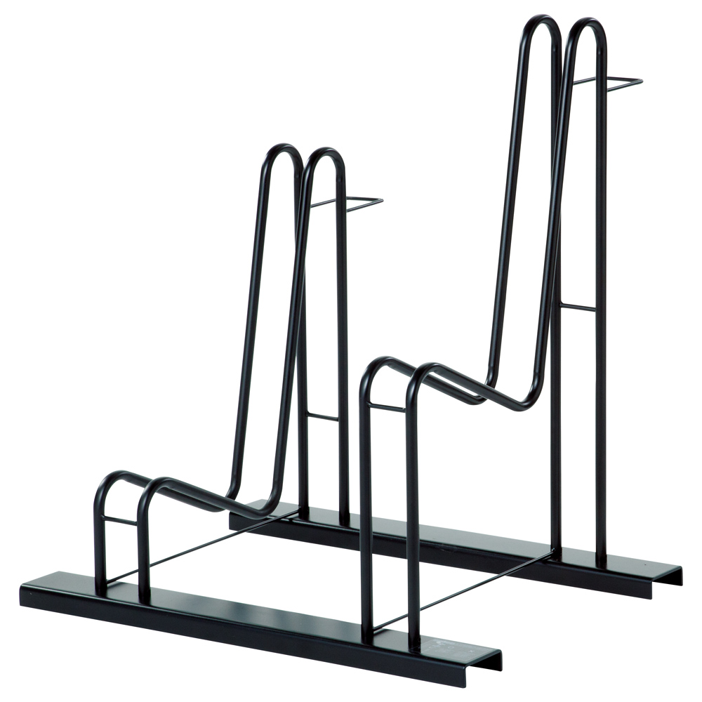 シンプルでスタイリッシュ、省スペース。3点ホールドでしっかり安定。公共の駐輪スペースにあるような本格仕様で、しかも3点で支えるので自転車が左右にフラつきません。2台用タイプ・3台用タイプは高低差のあるつくりで、2台・3台の自転車を省スペースで保管できます。