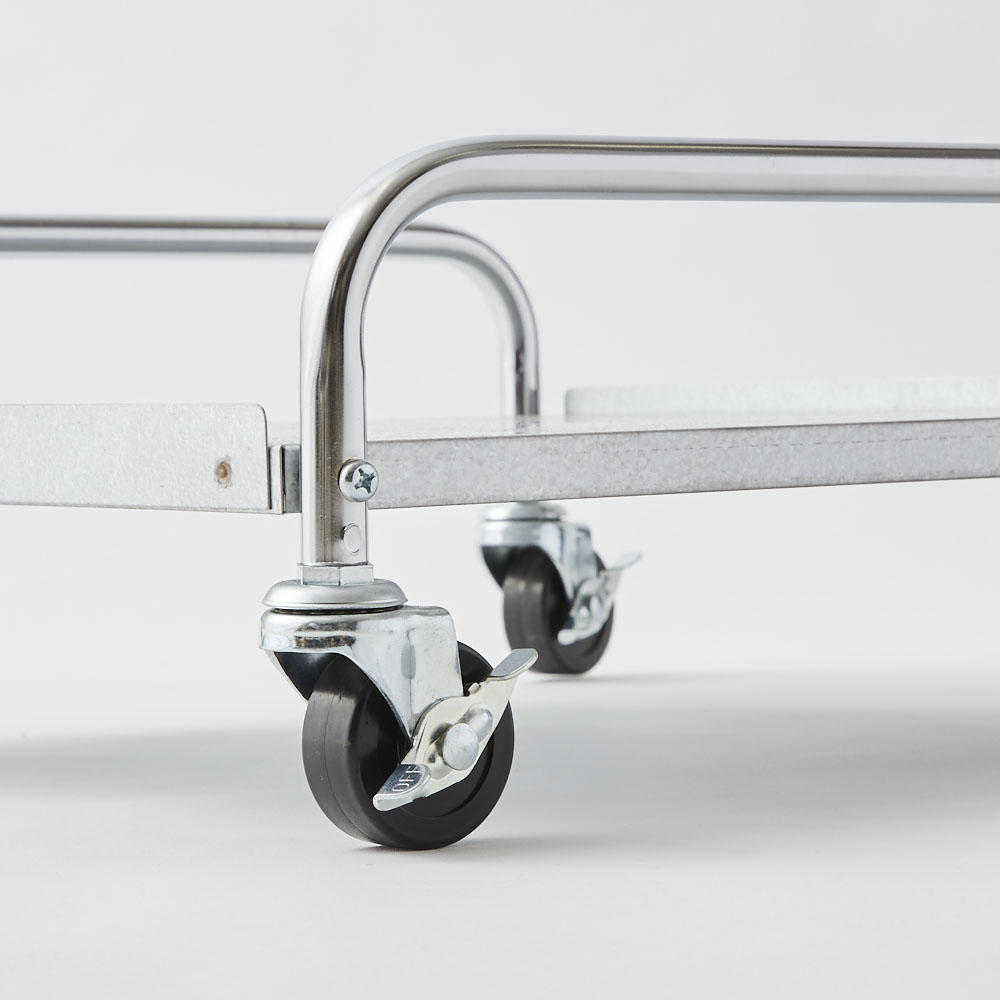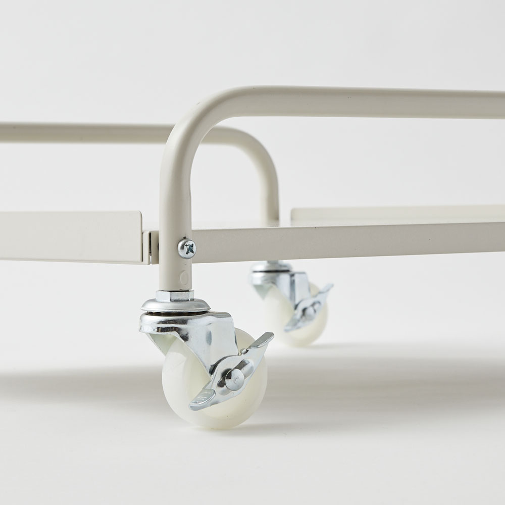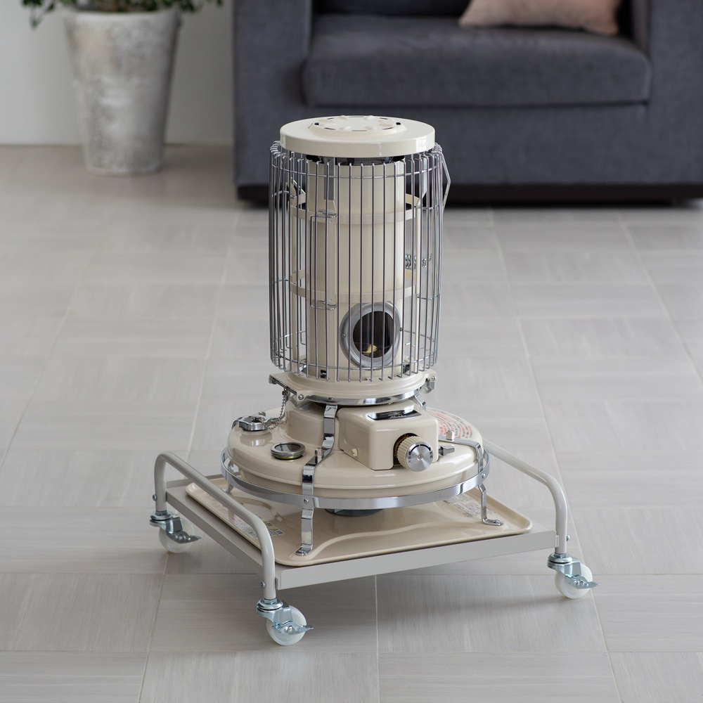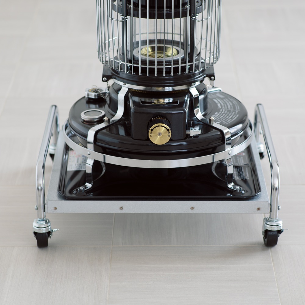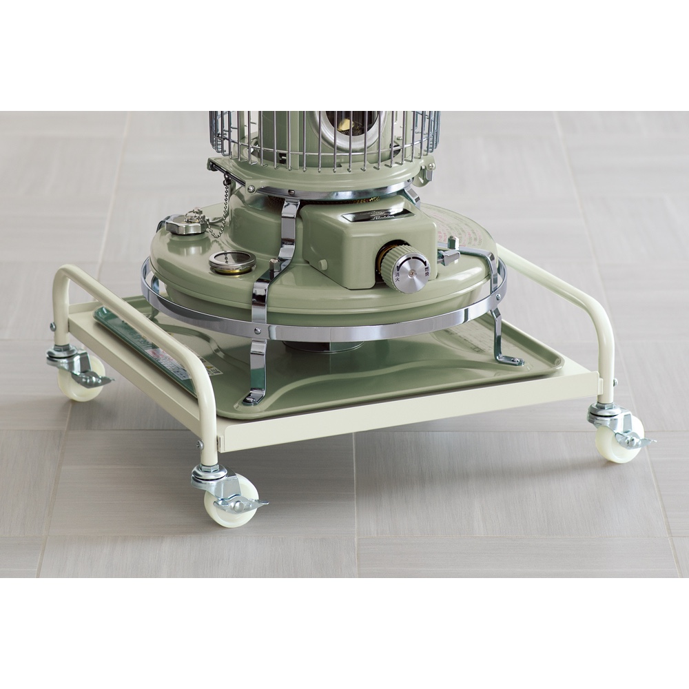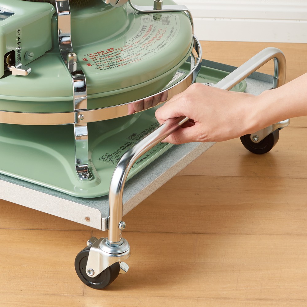 石油ストーブは決まった場所に置いておくことが多いけれど、これがあれば特に暖めたい場所、当たりたい場所へ、移動がラクにできます。ストーブの使用時はキャスターロックできるので安心。アラジンの石油ストーブ「ブルーフレーム」の色に合わせて選べる、シルバーとオフホワイトの2色展開です。「ブルーフレーム」のある暮らしがもっと快適になるポイント【ポイント】(1)灯油を入れて重くなったストーブの移動がラクにできる!(2)「ブルーフレーム」との色の組み合わせが楽しめる(3)キャスター4個にロック付きで安心【ポイント1】灯油を入れて重くなったストーブの移動がラクにできる!灯油を満タンに入れたストーブは重くなるもの。いつもとは別の場所で使いたい時、持ち歩くのはちょっと大変です。また灯油のポリタンクを置いてある場所で給油後、元の場所へ戻すのもちょっと億劫。そんな時、台車があれば軽々!立ち上がり部分のハンドルを持ってラクに移動できます。これまで持ち運びを面倒に感じていた人も、ブルーフレームのある生活がぐんと快適に!【ポイント2】「ブルーフレーム」との色の組み合わせが楽しめる「ブルーフレーム」の魅力のひとつは、独特の色展開。アラジングリーンと呼ばれるグリーンに加え、ナチュラルなクリーム、高級感のあるブラックも人気です。こだわって選ばれたストーブの色に合わせ、台車にも、ぴったりの色をご用意しました。たとえば、グリーンやクリームのストーブに合わせるならオフホワイトの台車。ブラックのストーブにはシルバーの台車など、お好みの色合わせをお楽しみいただけます。【ポイント3】キャスター4個にロック付きで安心キャスターには4個すべてにロックを付けました。ストーブ使用時はロックをして固定できるので、台車にのせたまま、安心してお使いいただけます。