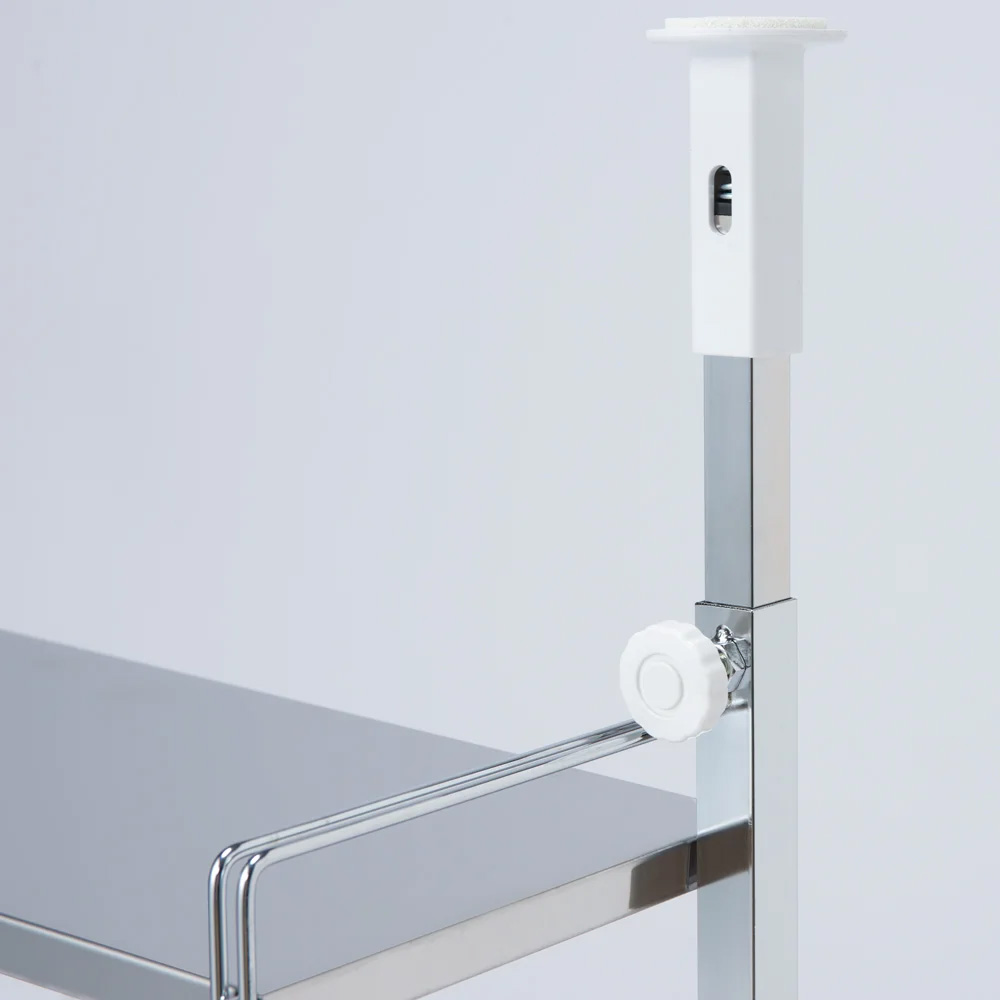 使用イメージ 突っ張り式で、高さの異なる場所にも設置できます。 ※写真は2段・幅40cm〜60cmタイプです。