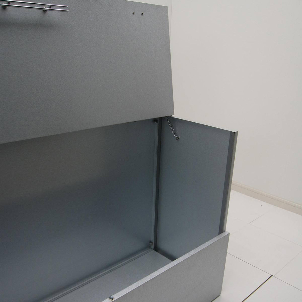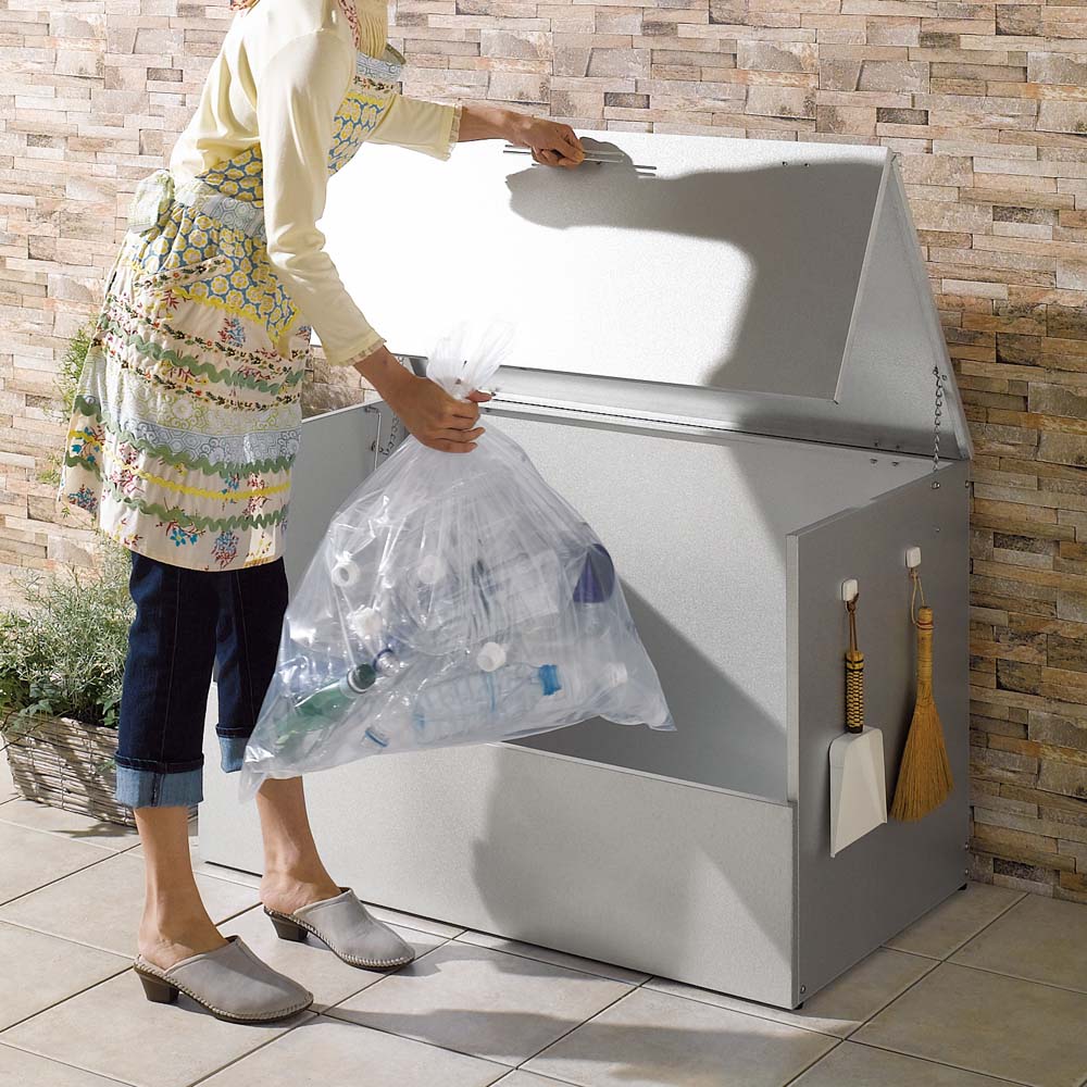 ※スチール製品は素材の特性上、経年変化でサビが発生致します。長くお使い頂くために、お届け直後の錆止め材の塗布をお薦めしております。 また、ご使用開始後も定期的なお手入れをお薦めします。(お手入れ方法&取り付け方法)おうちの顔である玄関先に、スタイリッシュな屋外ダストボックス。大容量のダストストッカーで、あふれがちな分別ごみに指定席をつくる屋外ゴミ箱です。置き場所を選ばない、奥行38cmのスリムタイプ。玄関先や勝手口に、スタイリッシュな屋外ダストボックスゴミの分別が進んだ地域では、ゴミの収集待ちも頭の痛い問題。なかなかめぐってこない資源ごみの待機場所、屋外ボックスで解決しませんか?大容量のダストストッカーで、あふれがちな分別ごみに指定席をつくります。置き場所を選ばない、奥行38cmのスリムタイプ圧迫感のない奥行スリムな設計です。駐車場脇や勝手口脇、家周りなど、余裕のないスペースにもダスト保管庫の収納スペースが生まれます。外からの目線が気にならないデザイン家の外に置くダストボックスは、意外とご近所の視線にさらされます。玄関先や勝手口脇など、外からの目線が気になるゴミ箱(ダストボックス)は、スタイリッシュなモデルがおすすめ。ガーデンやエントランスに違和感のない屋外用ストッカーで、ダスト待機の指定席を。ガーデニング好きの方におすすめしたい、情景になじむデザインが自慢です。ゴミの出し入れのしやすさを第一に考えました前面と天板が連動して「がばっ」と大きく開きます。大きな開口部で、かがまなくてもゴミを出し入れできます。ごみの出し入れ簡単。ワイドオープンタイプなので、ガレージ内の壁際や通路脇の狭いスペースでも開閉OK。種別に分別したゴミも余裕で待機できる、大容量が自慢です。素材や機能にもこだわり満載耐候性や耐腐食性に優れたガルバリウム鋼を使用したシンプルな収納庫です。付属のマグネットフックで効率的に収納できます。ほうきやチリトリなど勝手口まわりの用品を一か所にまとめておけます。脚部にはアジャスター付き設置時のガタツキを抑えるアジャスターが付いています。設置場所に傾斜がある場合も、ストッカーを水平に設置できます。お庭づくりを支えるエクステリア収納ガーデニング雑貨やベランダ用品もたっぷり収納できます。設置場所や条件に合わせた物置き収納庫をチョイスして、快適なエクステリアの収納プランを。【信頼と安心の国内工場での生産品】管理の行き届いた日本国内の工場で、加工から製造、梱包に至るまで丁寧に仕上げました。細部の丁寧な仕上がり、国産品ならではの品質は自信を持っておすすめします。【ガルバリウム鋼板】アルミニウムを溶融した亜鉛合金メッキで表面処理し、耐久性耐熱性と防食作用を兼ねそなえた鋼板です。