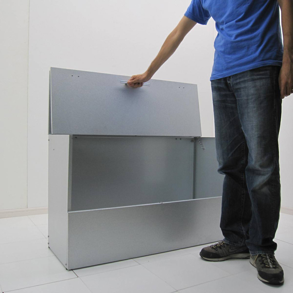 フタ付きの保管庫なら、ゴミをすっきりと隠せて風で乱れるのを防ぐことができ、さらにカラスやネコ対策もできて、まさに一石二鳥です。 写真は奥行55cmタイプ。※開閉部分仕様が異なります。