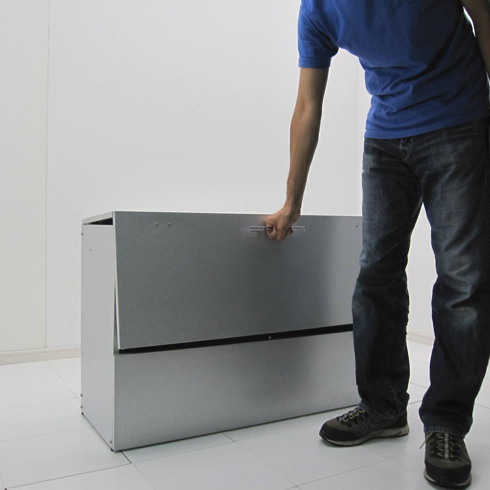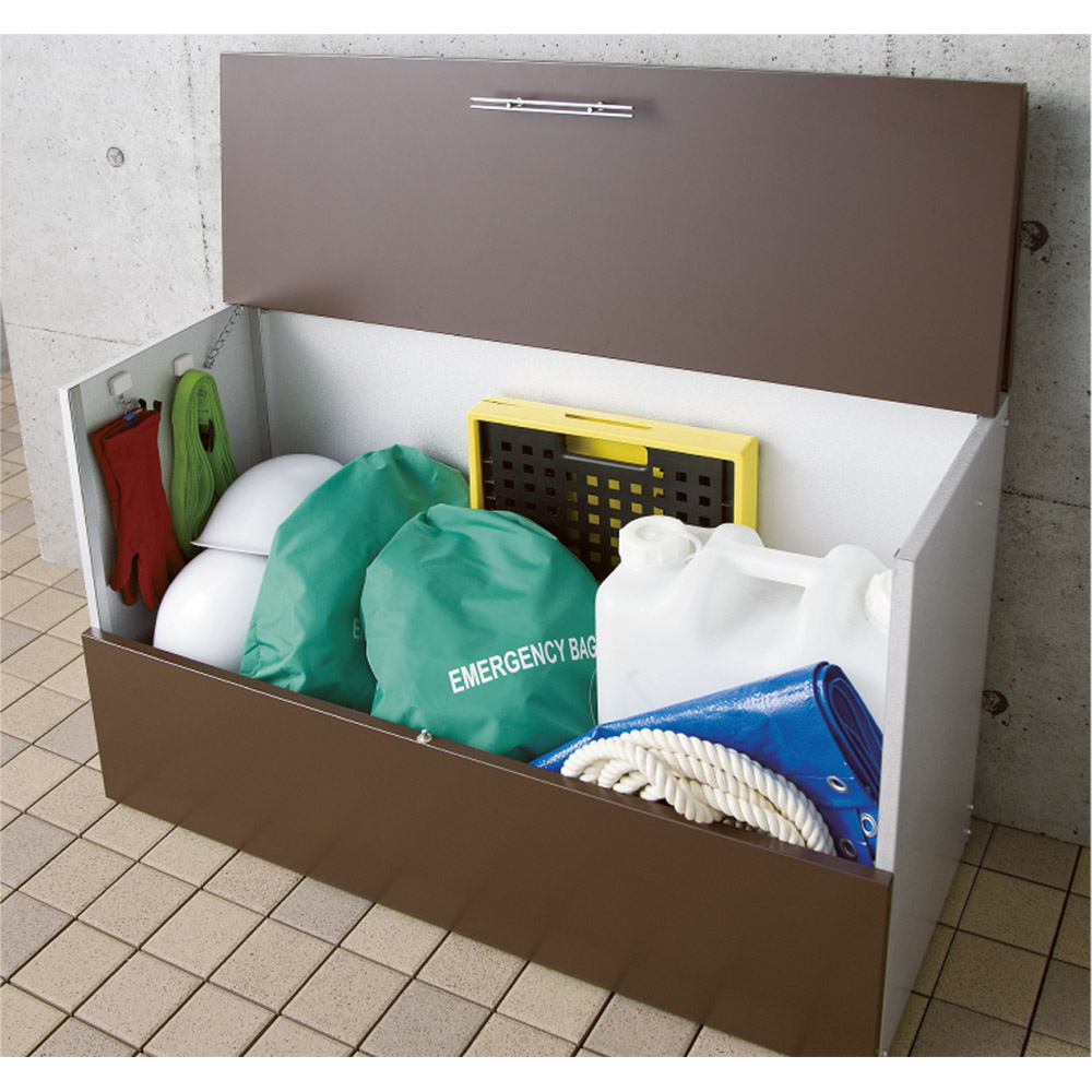 非常用品はすぐに持ち出せる場所に置くのが鉄則。玄関先で常備しておきましょう。 写真は幅100奥行55cmタイプ。※開閉部分仕様が異なります。
