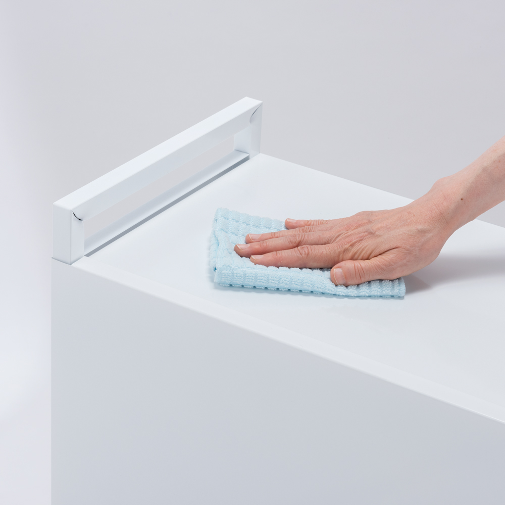 天板は熱に強いスチール製。メラミン焼付塗装でお手入れがラク。