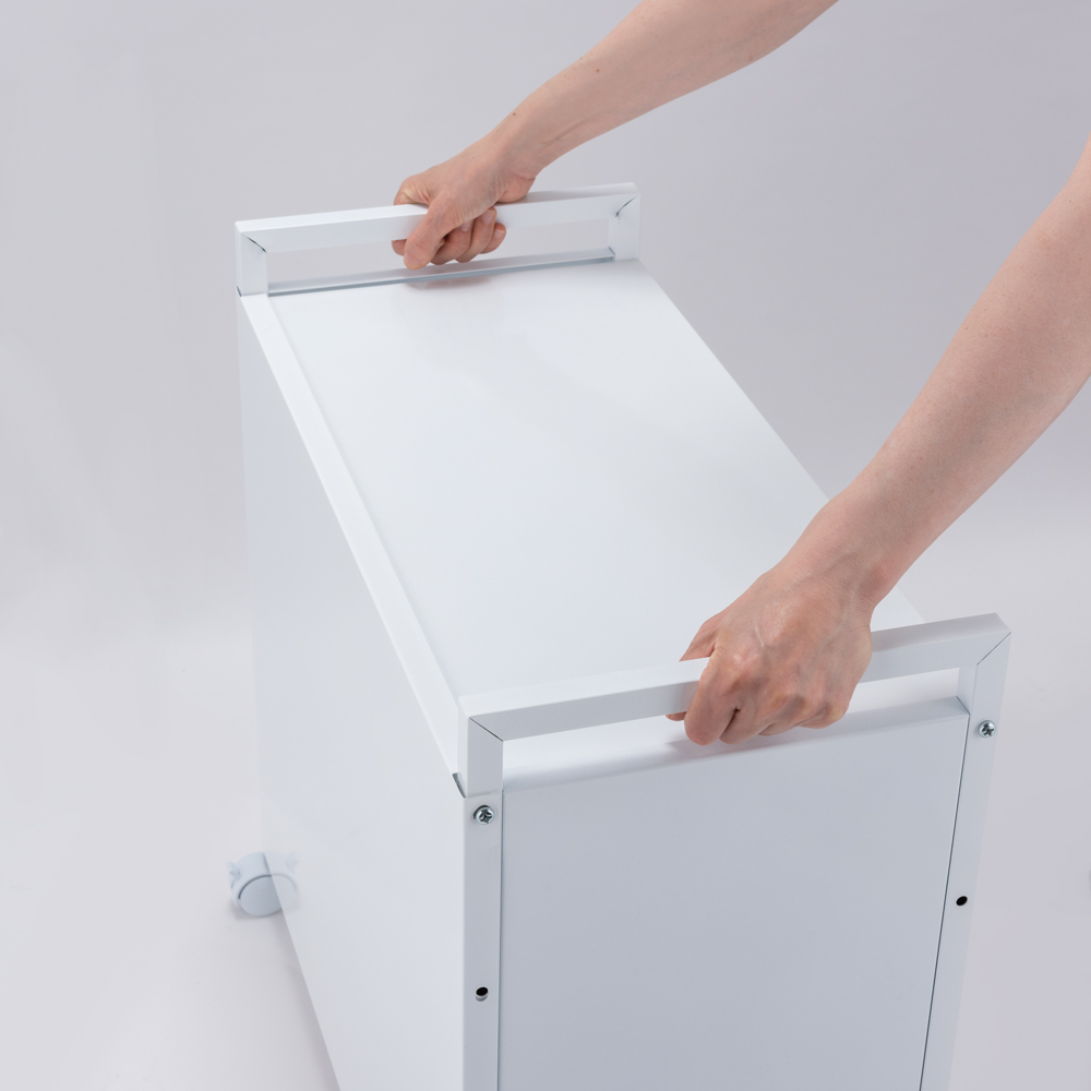 側面に持ち手付きで、重い物を載せたままでも移動が簡単!