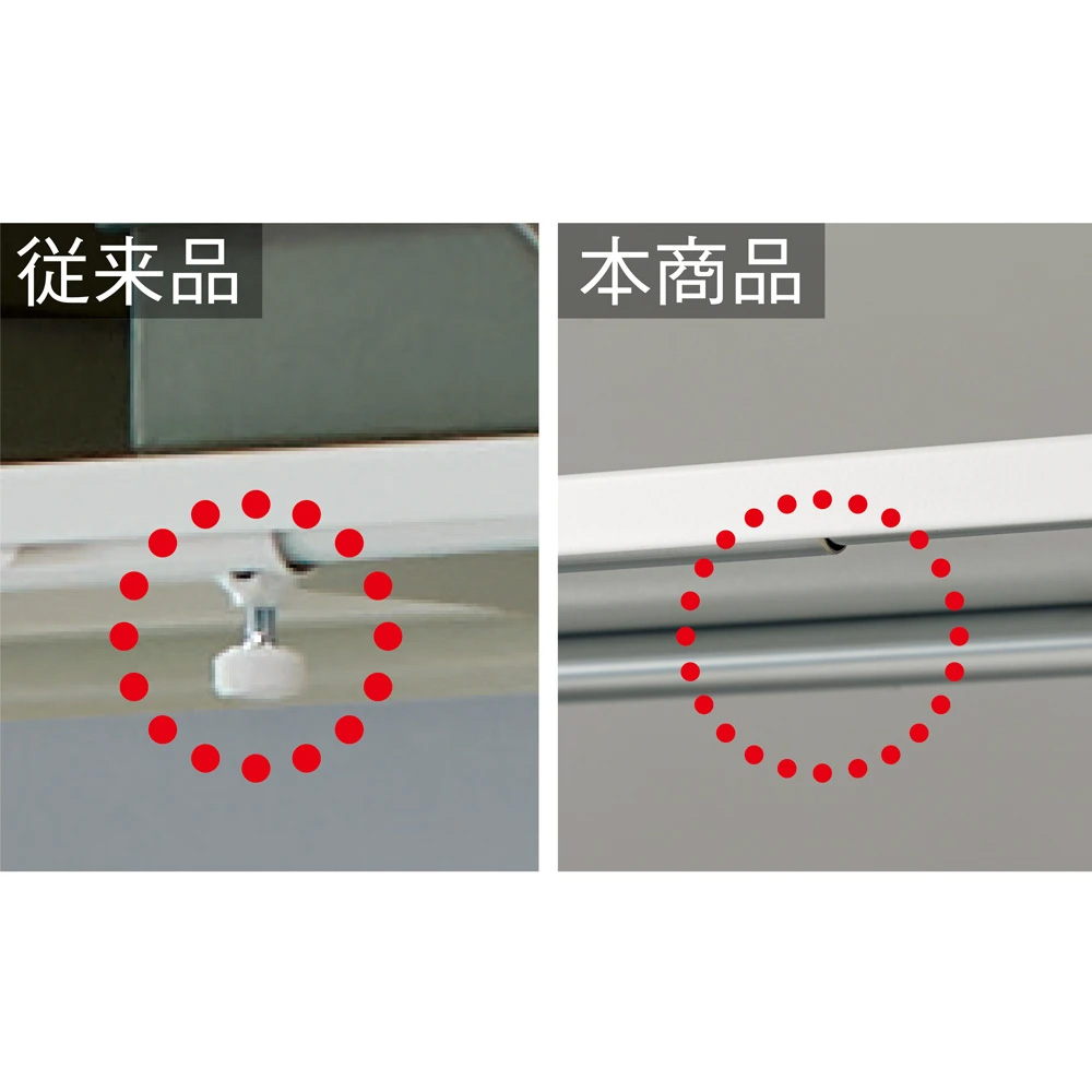伸縮部を固定するネジが棚板内に隠せて、収納の邪魔になりません。