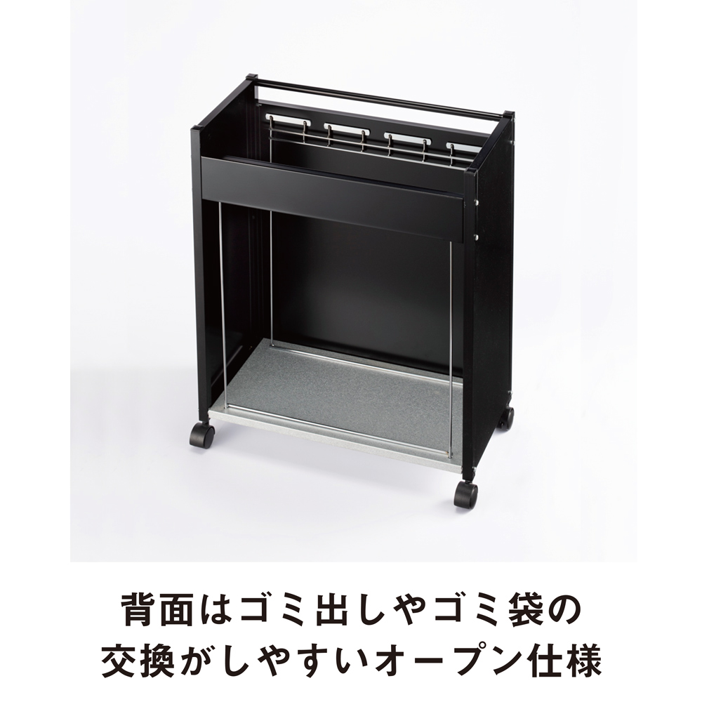 使用イメージ(イ)ブラック 背面はゴミ出しやゴミ袋の交換がしやすいオープン仕様。 ※写真は別売りの70リットルタイプです。