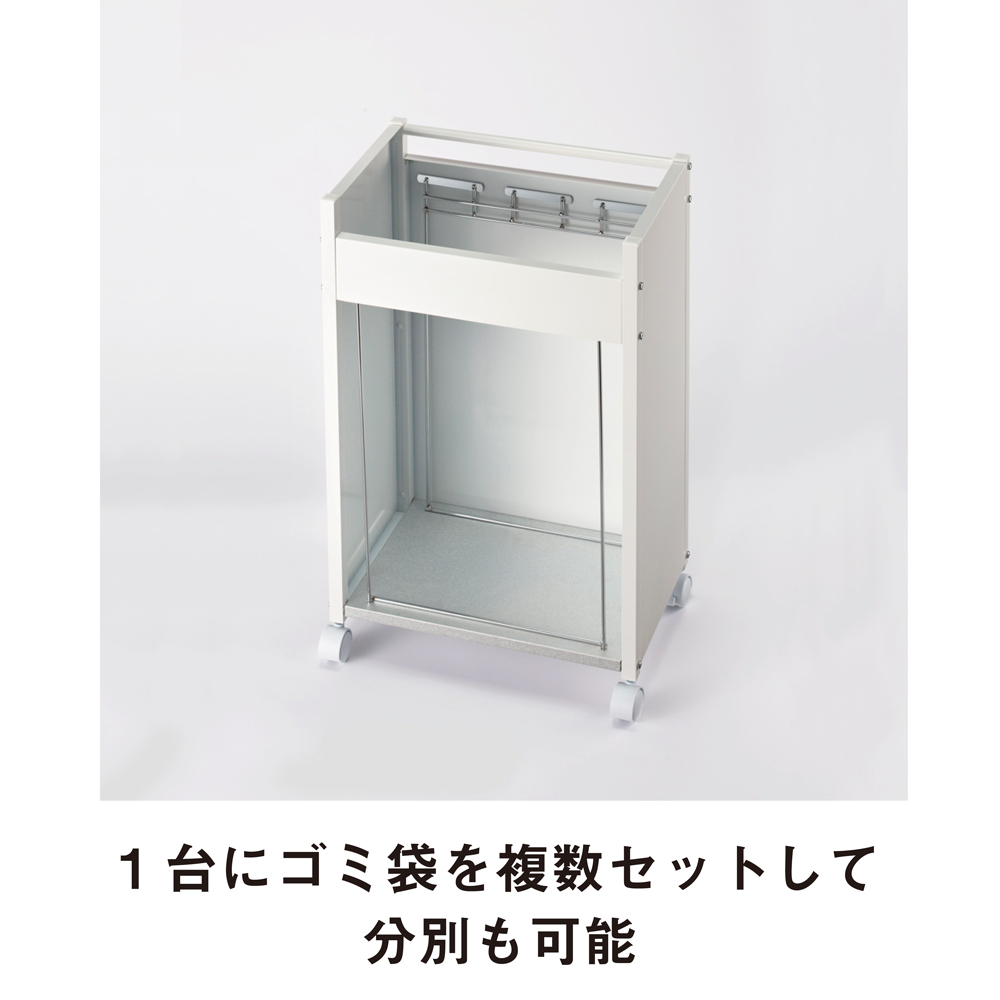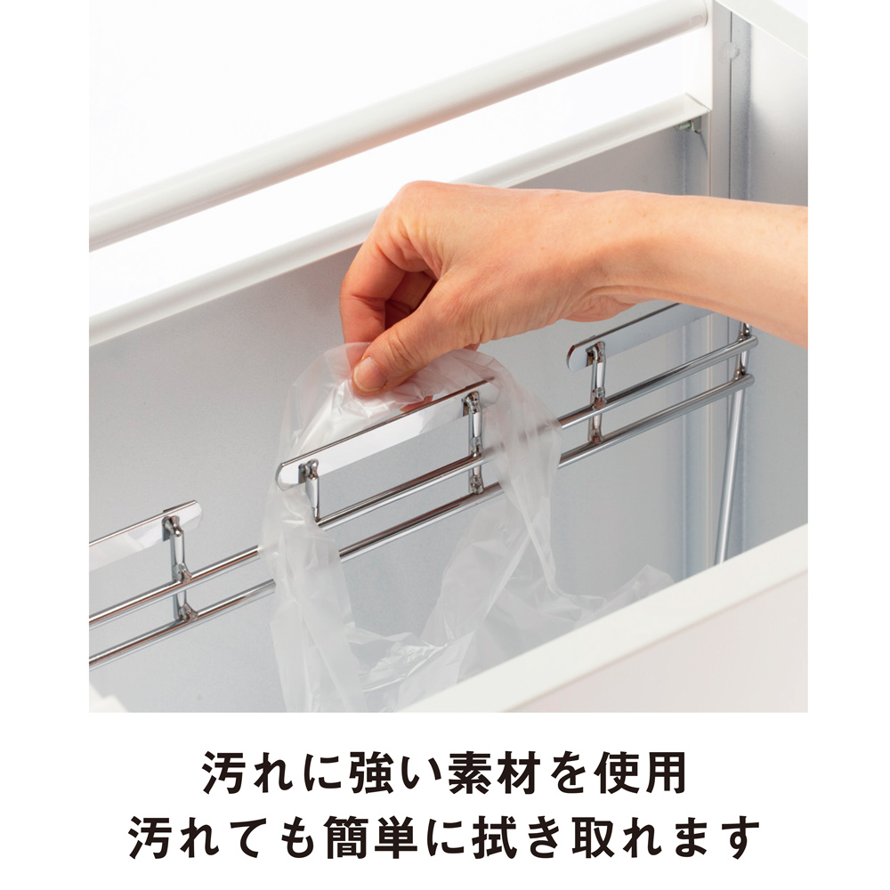 使用イメージ(ア)ホワイト レジ袋も掛けられて、細かく分別もできます。 ※写真は別売りの30リットルタイプです。