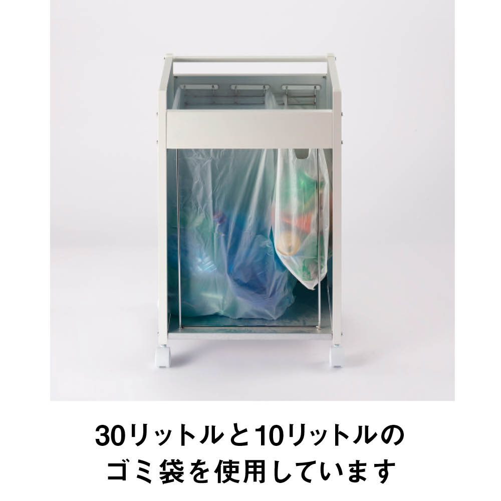 (ア)ホワイト 1台にゴミ袋を複数セットして分別も可能。 ※30リットルと10リットルのゴミ袋を使用しています。