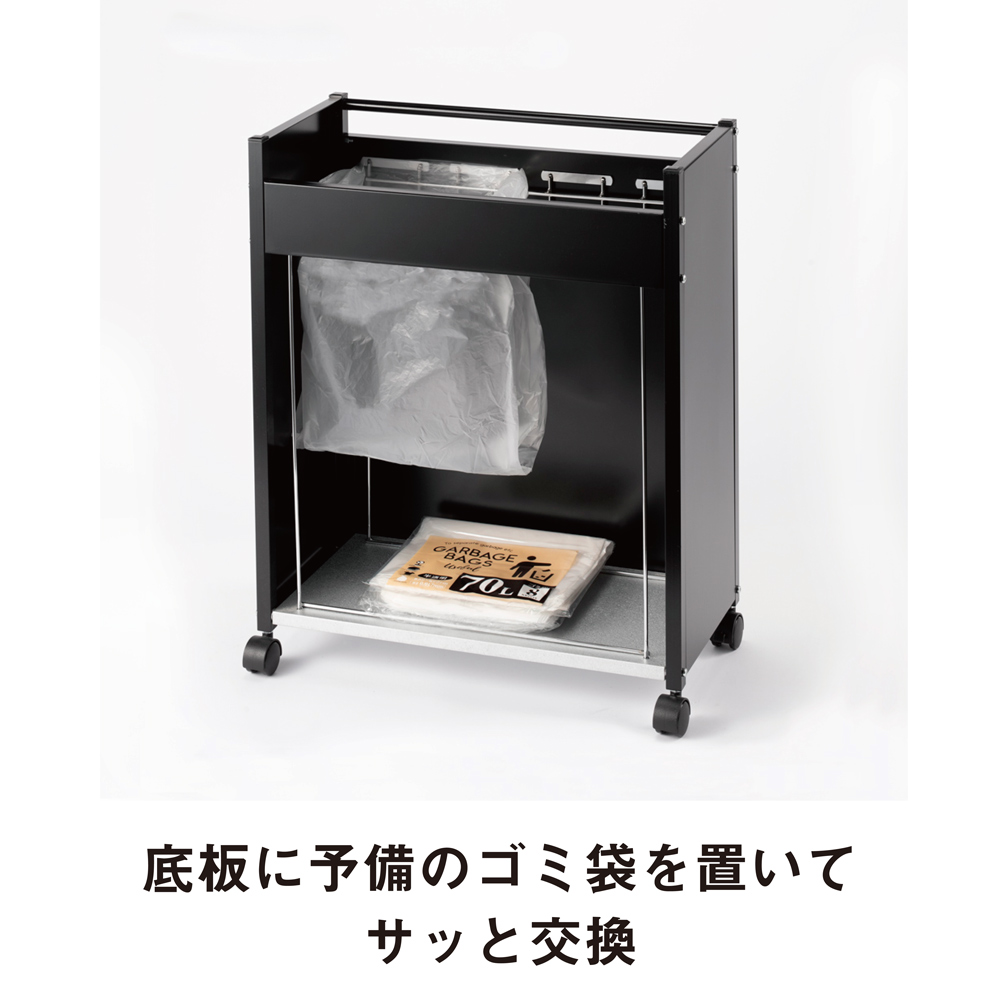 底面にはレジ袋のストックを収納しておけます。 ※写真は別売りの70リットルタイプ・幅56cm(イ)ブラックです。