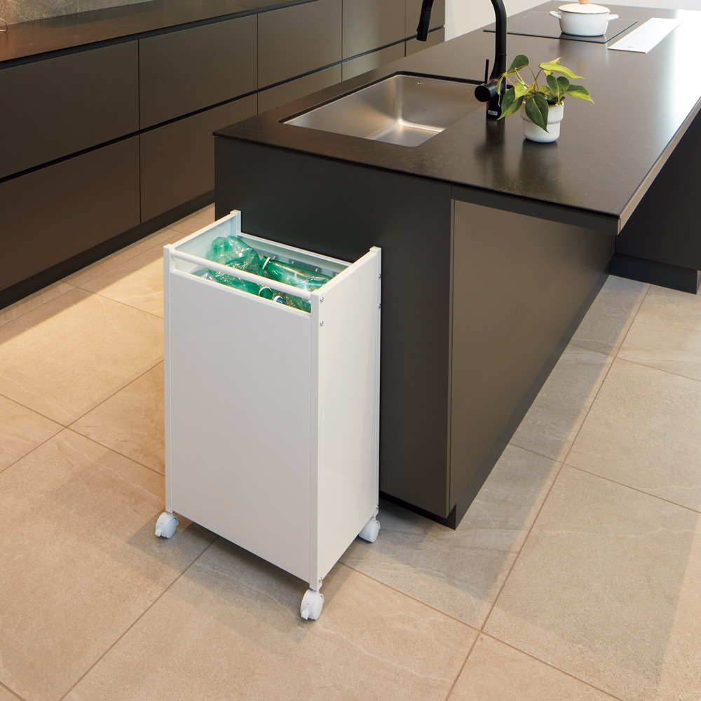 (ア)ホワイト 調理中はシンクの近くに移動すれば、サッと捨てられて効率的です。 ※45リットルのゴミ袋を使用して撮影しています。