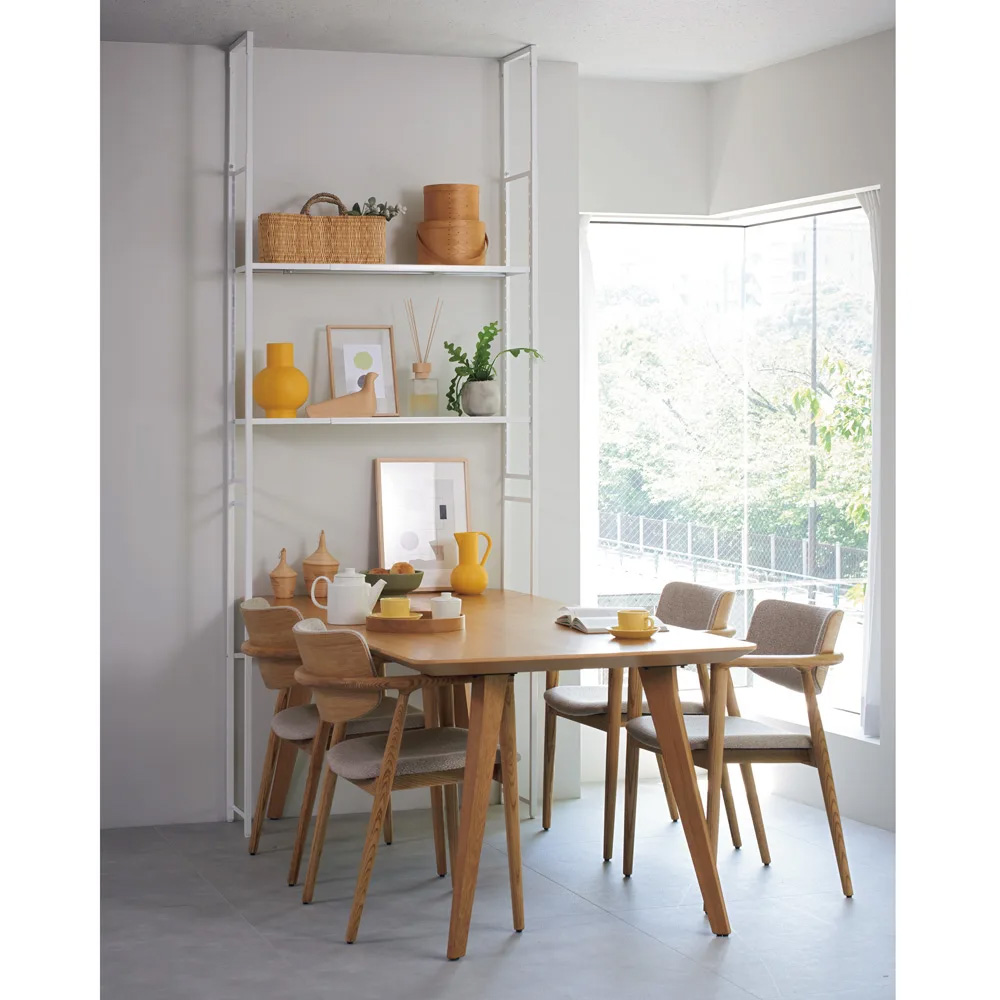 使用イメージ(イ)ホワイト ダイニングテーブル上に、すぐ手が届く便利な棚を新設できます。 ※写真は別売りの2段・幅81cm〜126cmタイプです。写真の天井高さは240cmです。