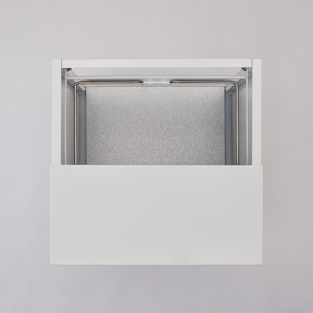 (イ)ホワイト 背面 底面はガルバリウム鋼板。住宅建材にも使われる頑丈な素材です。水や油に強く、さびにくいのが特徴です。