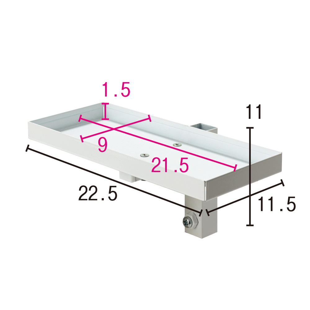 突っ張りランドリーバスケットに取付けて使える専用トレー。洗濯中や入浴前にもあると助かる、小さなお役立ちアイテムです。高さも配置も自由に“上の空間”を有効活用できるスペパカグ(※)。(※)スペパカグはスペース・パフォーマンスをガンガンUPさせる家具の新ジャンル。株式会社dinosの登録商標です。組立時に取付けられる便利なトレー●別売の「突っ張りランドリーバスケット」の使い勝手が、さらによくなるトレーです。●洗濯中、とっさにどこかに小物を置きたい。入浴時にスマートフォンなどの置き場がない。そんなよくあるシーンをお助け。●組立時に無段階で使いやすい高さに設定できて、小物置きに大活躍します。小さくても、こだわりのつくり●内寸幅21.5cm、奥行9cmの程よいサイズ。●耐荷重は約1kg。●小さなピアスなどの落下を防げるよう、落下防止用の縁を付けました。●お手入れしやすいスチール製(メラミン焼付塗装)。カラーも本体と同色のホワイトで清潔感があります。●国内で丁寧に仕上げられた日本製。こんなときに便利です●入浴時、スマホやメガネ、外したアクセサリーなどの置き場に。●洗濯前の衣類のポケットから出てきた小物や小銭などの一時置きにも。シリーズ商品のご案内突っ張りランドリーバスケットは以下のシリーズ商品がございます。※このページは専用トレー 外寸幅22.5cm奥行11.5cm高さ11cm(固定部含む)の販売ページです。・バスケット2段フック2個・バスケット3段フック2個・バスケット4段フック1個・専用トレー 外寸幅22.5cm奥行11.5cm