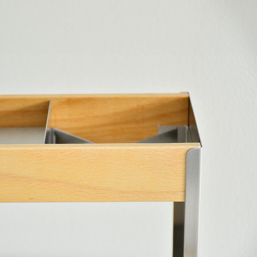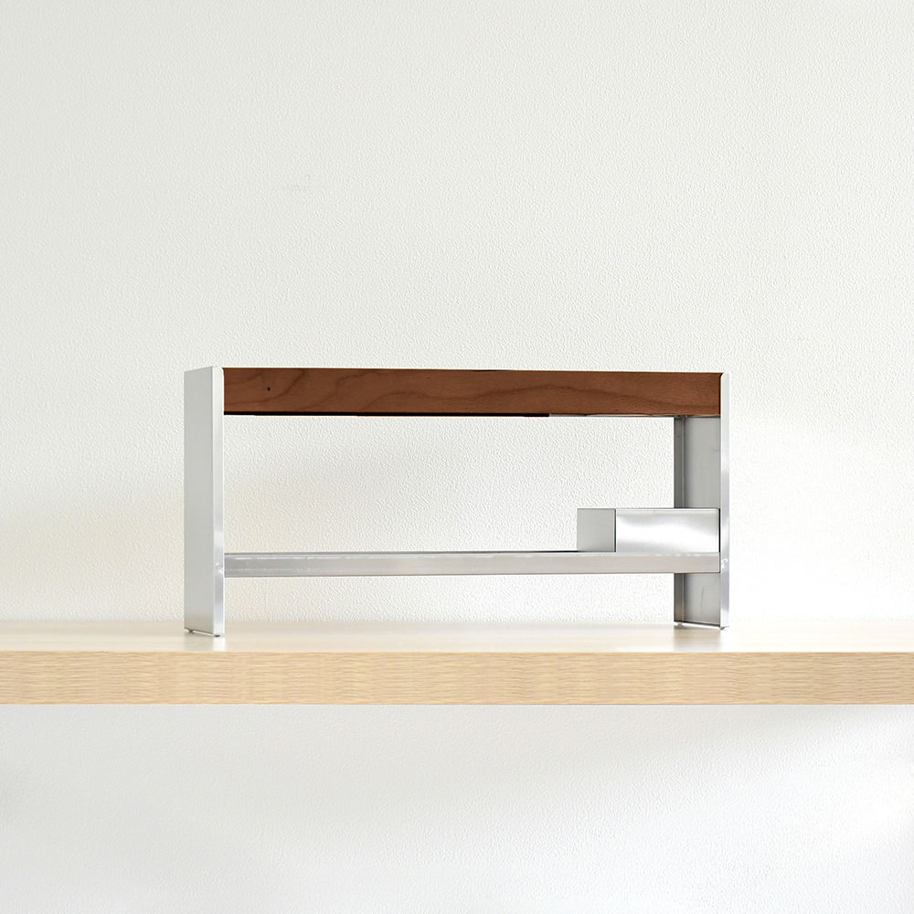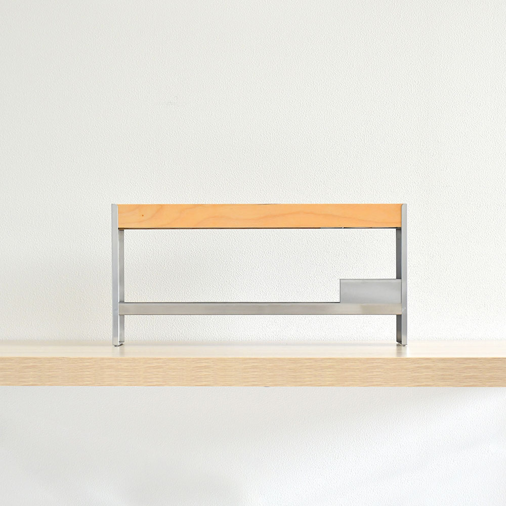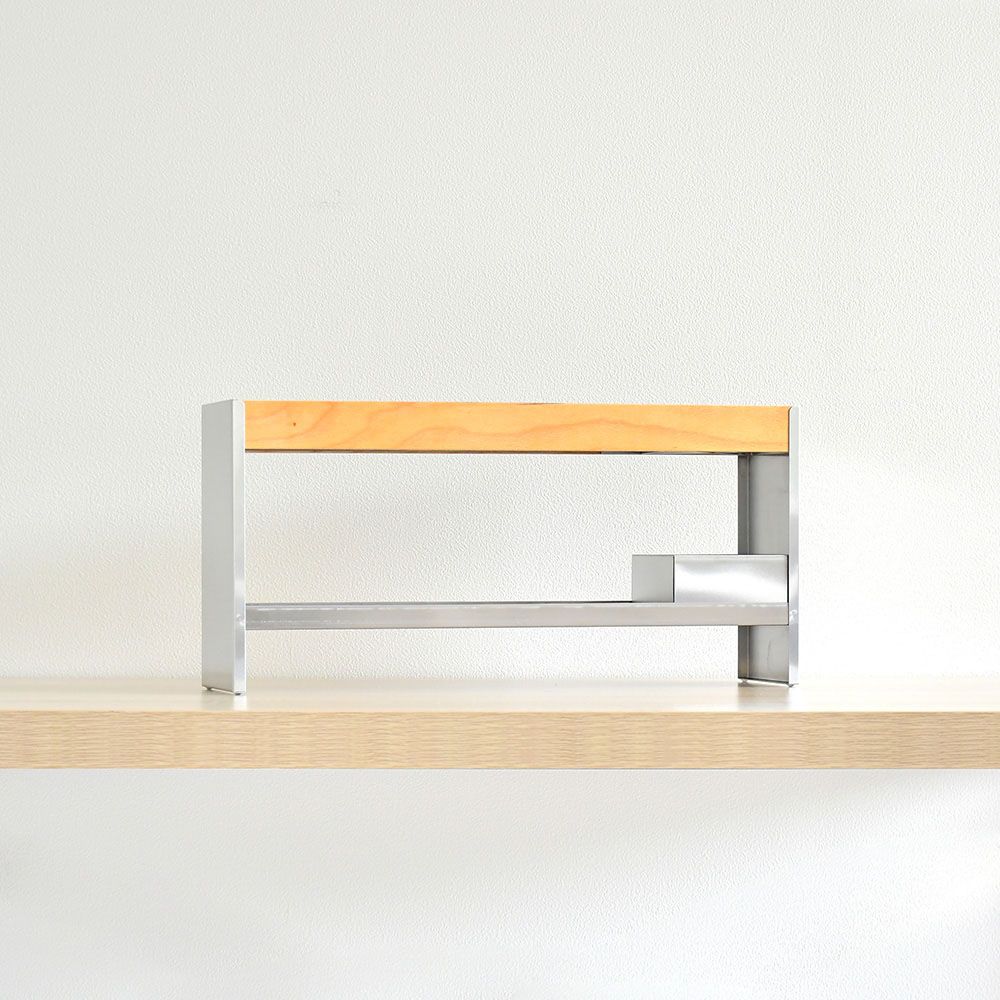 サビに強くお手入れのしやすいステンレスに、南魚沼産木材をポイントに使ったキッチン収納シリーズ。コンロ横やキッチンカウンターにおけば、各種のスパイスやキッチンツールの置き場所として便利です。ツール収納部はクロスしているため収納しやすく、受け部のボックスは取り外し可能でお手入れもしやすく衛生面にも優れています。新潟南魚沼の木材を使う取り組み近年生活スタイルが変化したことで木材需要が減少し、林業が哀退した今、この先手入れがされないであろう森林が増えています。主伐や間伐などの適切な森林整備を行うことで森林を健全な状態に導き、森林が持つ機能の回復を目指しています。今、使用する木々は100年前の先人たちから受け継いだものです。その大切な資源を「モノづくり」を生業とするわたしたちがカタチを変え、人々が魚沼杉やブナの価値に気づくことで、山が生き返ることを目指します。価値が対価になり、森へ還元することで次世代に繋がると信じて・・。それこそがわたしたちが目指すサステナビリティ長期ビジョンです。Brand Concept使い手の方たちのライフスタイルに彩りを添えるようにていねいにモノづくりしそのモノの存在価値(コト)をやさしく伝え作り手としてだけではなく人生のストーリーテラーとしてモノがたりを体感してもらえるお手伝いをしていくRoot is… モノ・コトはここから始まる