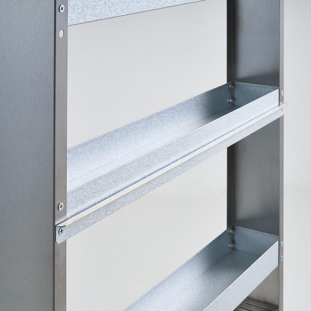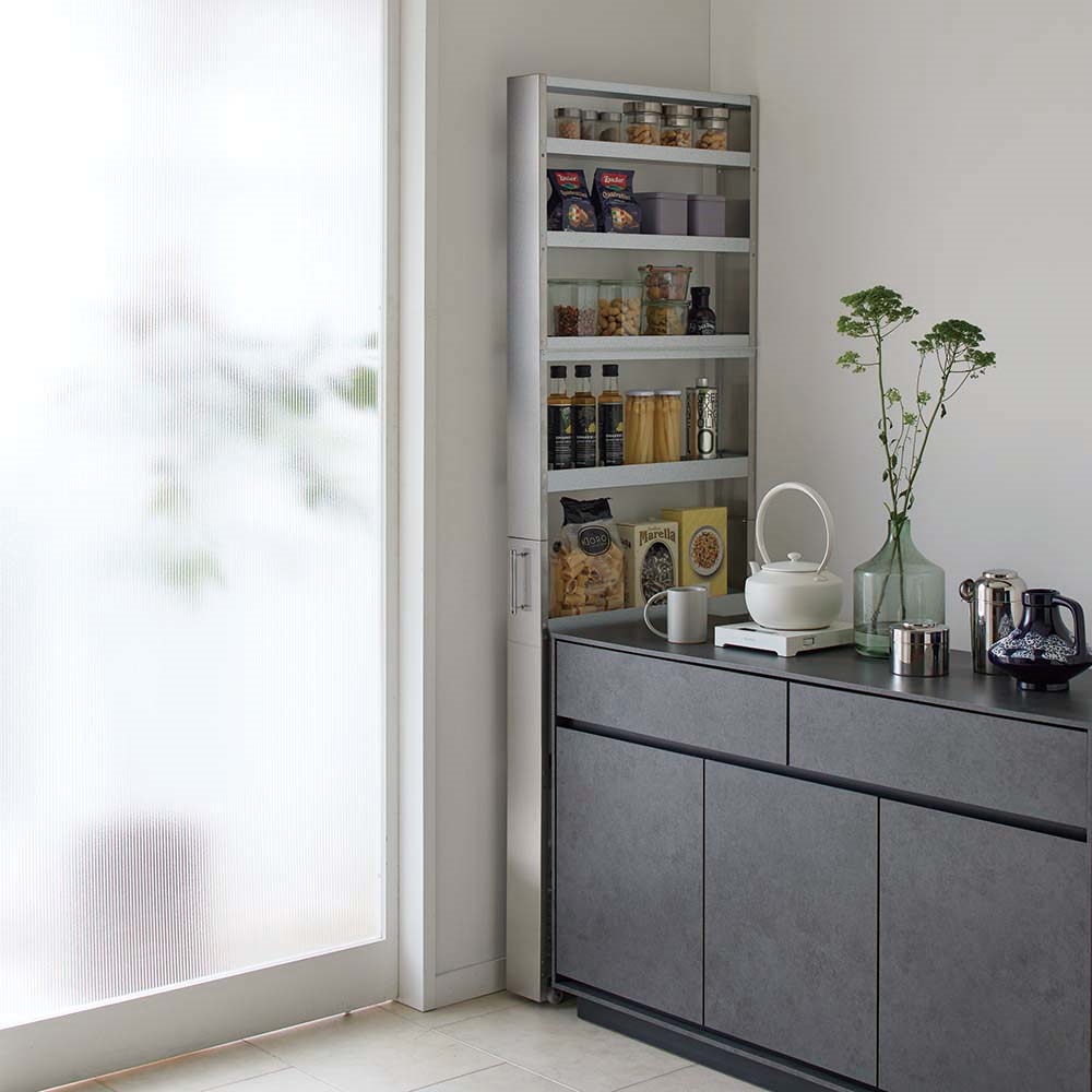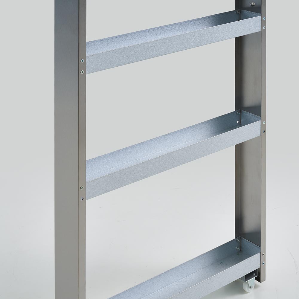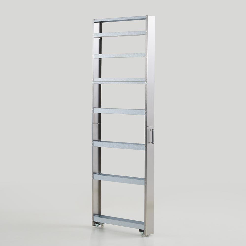 狭い場所に納まるコンパクトでスリムなすき間収納家具。高級感があり水ハネや汚れ、サビにも強いステンレス製だからキッチンやサニタリーで大活躍。デッドスペースを有効活用して、たっぷりの大量収納できる食品ストッカー・キッチンストッカーが実現。清潔感あふれるステンレス製でお手入れ簡単。デッドスペースを大容量収納に変えるキッチン収納■たった幅10cmからの隙間空間を有効活用して大量収納が可能なキッチンストッカーのスペースに。■前面にステンレス素材を用いることで、水跳ね・汚れに強くお手入れのしやすいキッチン収納庫になりました。隙間家具でも妥協しない。コンパクトスリムでも高機能なキッチンストッカー■可動板は3枚付きです。収納物に合わせて調整可能です。■スチール製の棚板には収納物が落ちないようにこぼれ止めが付いています。背の低いキッチンアイテムも安定して収納が可能です。■ワゴン下部分には滑らかな開閉・出し入れを可能にし、ワゴンを支えるためのキャスターを設置し安定感のある設計に。■スムーズに開け閉めできるので中身に使用頻度の高いものをまとめて、調理・家事を時短できるアイデアアイテムです。開け閉めする際は、必ず取っ手を持って動かすようにお願いいたします。横の部分などを持つと怪我をする恐れがございますのでご注意ください。収納物や設置場所に合わせて多彩に選べる、省スペースで豊かなバリエーションがポイント。■選べる幅サイズ展開であなたのキッチンにピッタリなサイズをお選び下さい。■幅は10cm・15cm・20cm・25cmの4タイプお選びいただけます。■幅10cmタイプは細々した調味料の整理整頓にも便利。細長い瓶や小さなストックを見やすく管理できます。縦に収納スペースが広いので、カトラリースタンドに立てたままの調理器具・キッチンツールやお箸・菜箸なども収納可能。■幅15cmは大きめの調味料ボトルや収納ケースに詰めたラップやふきん・タオルなどのキッチンアイテムを収納して食品ストッカーとして活躍します。■幅20cmタイプは2Lペットボトルを1列に収納出来るゆとりサイズ。他、シリアルや大きめの保存容器に詰め替えた食品ストック類・予備のキッチンペーパーをまとめても。光沢のあるステンレスは様々なキッチンインテリアに調和する万能おしゃれカラー■ステンレスの輝くシルバー色は、キッチンに馴染みやすいインテリアとしても定番のカラー。■一般的なキッチンの造り付け収納の取っ手や、水栓、冷蔵庫などのキッチン家電に多用される色です。■水回りに多く採用されるカラーなので、どんなスタイルのキッチンにも違和感なくマッチします。■クールモダンなスタイルやナチュラルインテリア、北欧インテリアは勿論、昨今トレンドの石目調・大理石調のラグジュアリーでゴージャスなお部屋・システムキッチンにもおすすめです。■シンプルな見た目のデザインで、造り付けの建具とも合わせやすく、統一感のあるキッチンインテリアが叶います。信頼と安心の国内工場での生産品のキッチン収納・メタルラックです■国内の職人がひとつずつ丁寧に仕上げたキッチンラック・キッチンボードです。■細部の丁寧な仕上がりなど、国産品ならではの高品質な食器棚をお楽しみください。■キッチンのすきまを無駄なく使いたいあなたにお勧めのキッチン収納ラックです。新築やリフォーム、模様替えの時にもおすすめの逸品■お引越しや模様替えのタイミングでスペースを便利に有効活用してみませんか?■高価な備え付け家具やリフォームよりも、リーズナブルに新生活を始められます。■是非普段使うものこそ、大好きなものをじっくりとご検討下さい。