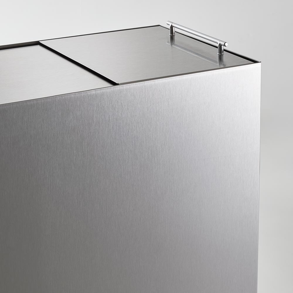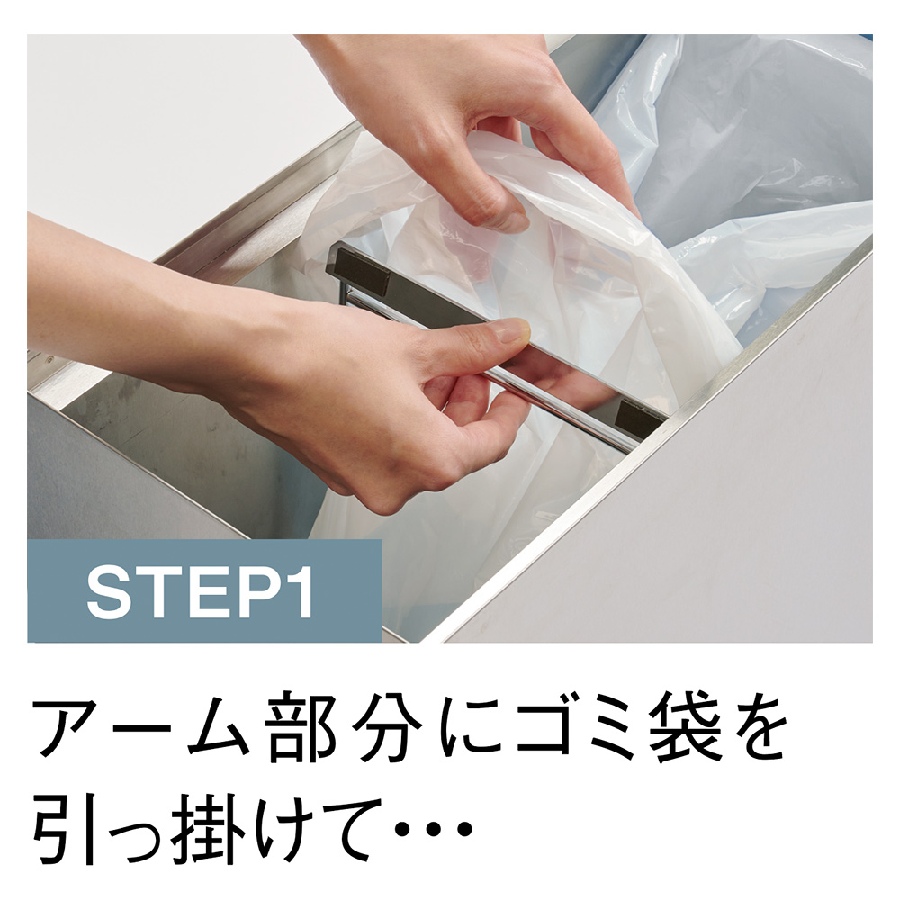 高級感あふれるステンレス製のダストボックス。特殊構造でゴミ袋の交換がラクにできます。ゴミ袋の取り換え作業がラクにできる特殊構造のダストボックス■内部の左右に動く2つのゴミ袋枠の先端の磁石でゴミ袋を止める構造■磁石で止める仕組みなのでゴミ袋の取り出しもセットも簡単です。■片方に袋を3〜4枚セットしておけば、使った後すぐに新しい袋をセットでき便利です。清潔感あふれるステンレス製でスタイリッシュ■ヘアライン調のステンレス素材で高級感があります。■ステンレス素材を用いることで、水跳ね・汚れに強くお手入れのしやすい。■シンプルモダンなデザインで、造り付けの建具とも合わせやすく、統一感のあるキッチンインテリアが叶います。置く場所を選ばないコンパクトサイズ■スリムなサイズでカウンター脇に置いても邪魔になりにくいサイズです。■フタの開閉がスライド式なので縦置きでも横置きでも便利にご使用いただけます。フタは調理中に開けっ放しにできるスライド式■サッと開けしめできるスライド式のフタなので、調理中に開けっ放しにできて効率アップ!キャスター付きで移動もスムーズ■簡単に移動できるので、汚れがちなゴミ箱周りの掃除がラクに。信頼と安心の日本製■国内の職人がひとつずつ丁寧に仕上げました。■細部の丁寧な仕上がりなど、日本製ならではの高品質なダストボックスをお楽しみください。