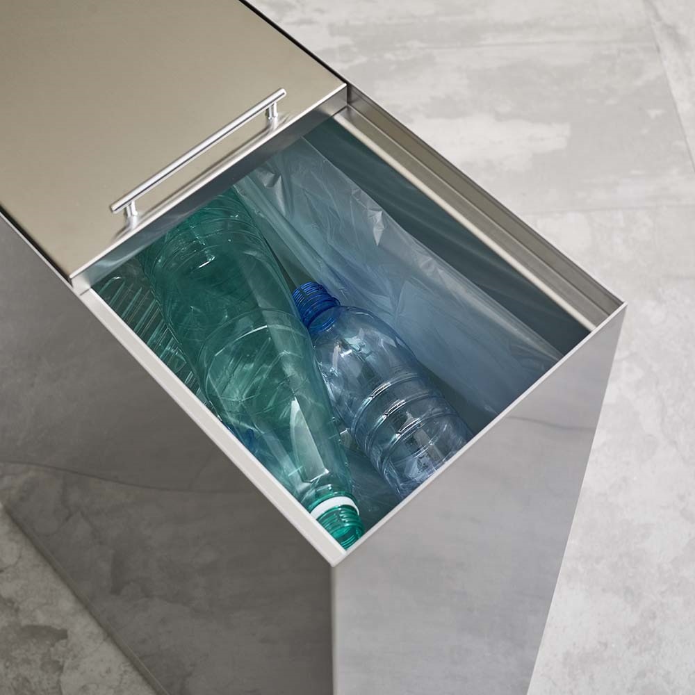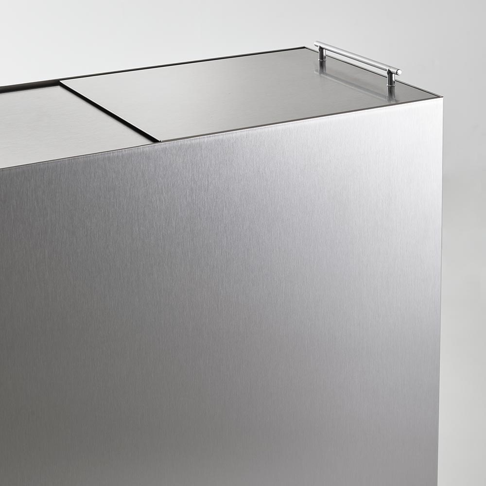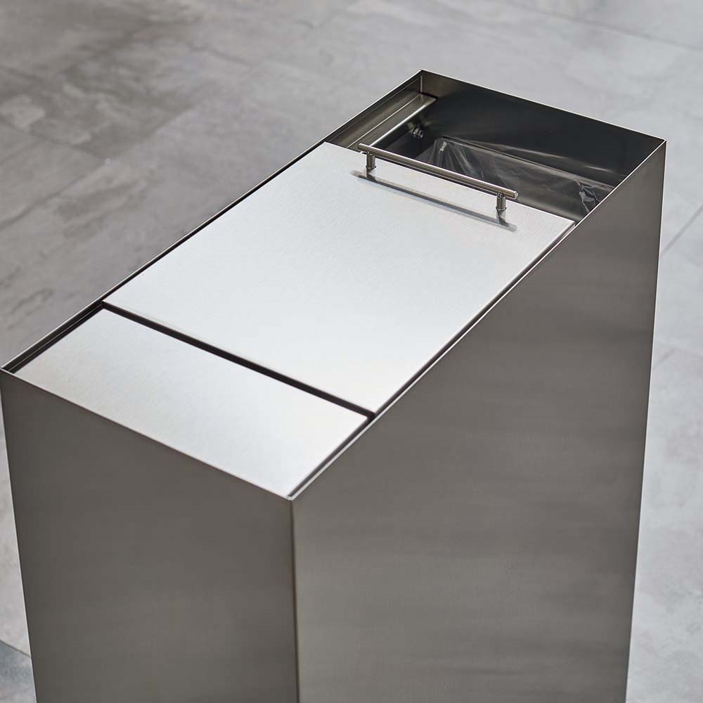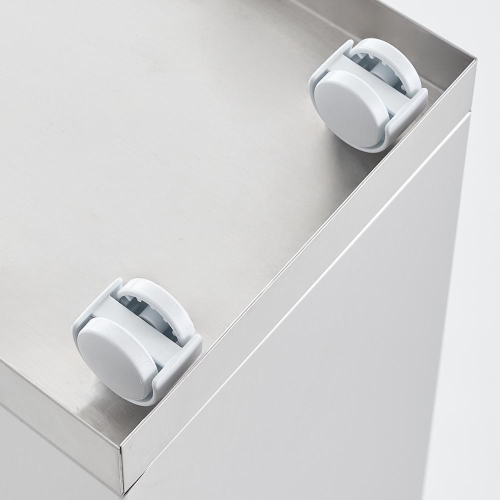 高級感あふれるステンレス製のダストボックス。特殊構造でゴミ袋の交換がラクにできます。ゴミ袋の取り換え作業がラクにできる特殊構造のダストボックス■内部の左右に動く2つのゴミ袋枠の先端の磁石でゴミ袋を止める構造■磁石で止める仕組みなのでゴミ袋の取り出しもセットも簡単です。■片方に袋を3〜4枚セットしておけば、使った後すぐに新しい袋をセットでき便利です。清潔感あふれるステンレス製でスタイリッシュ■ヘアライン調のステンレス素材で高級感があります。■ステンレス素材を用いることで、水跳ね・汚れに強くお手入れのしやすい。■シンプルモダンなデザインで、造り付けの建具とも合わせやすく、統一感のあるキッチンインテリアが叶います。置く場所を選ばないコンパクトサイズ■スリムなサイズでカウンター脇に置いても邪魔になりにくいサイズです。■フタの開閉がスライド式なので縦置きでも横置きでも便利にご使用いただけます。フタは調理中に開けっ放しにできるスライド式■サッと開けしめできるスライド式のフタなので、調理中に開けっ放しにできて効率アップ!キャスター付きで移動もスムーズ■簡単に移動できるので、汚れがちなゴミ箱周りの掃除がラクに。信頼と安心の日本製■国内の職人がひとつずつ丁寧に仕上げました。■細部の丁寧な仕上がりなど、日本製ならではの高品質なダストボックスをお楽しみください。