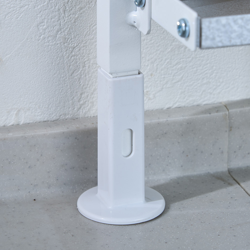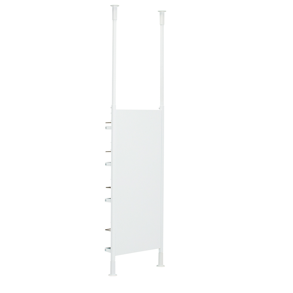 使用イメージ(ア)ホワイト 壁付けでも使えます。2本の支柱高さを別々に調節できるので、段差が有るところにも設置可能。 ※写真は別売りのロータイプ幅55cmです。