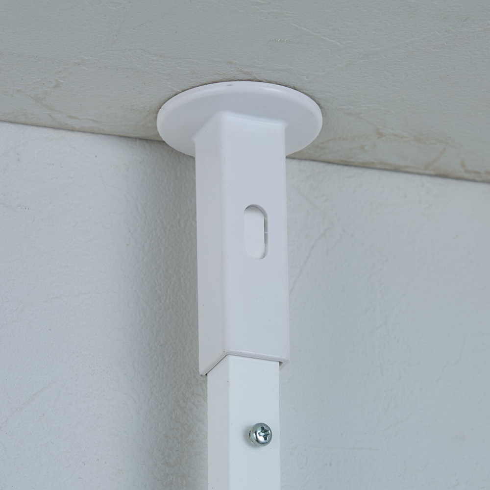 使用イメージ(ア)ホワイト 壁付けでも使えます。2本の支柱高さを別々に調節できるので、段差が有るところにも設置可能。 ※写真は別売りのロータイプ幅55cmです。