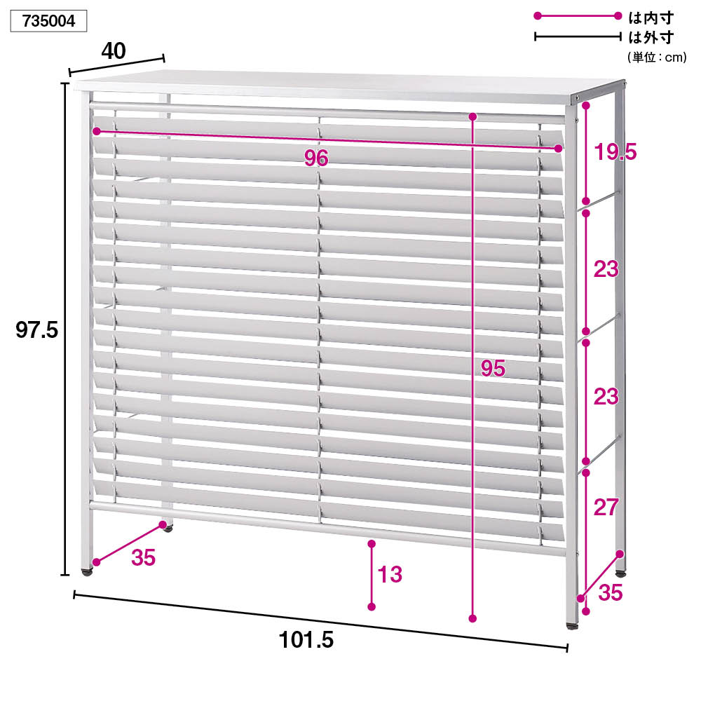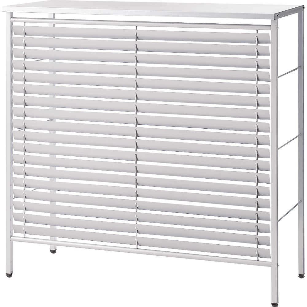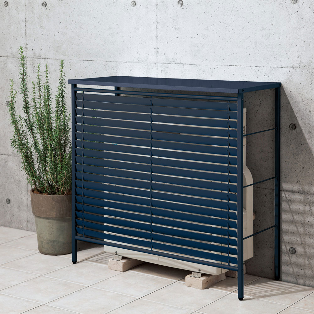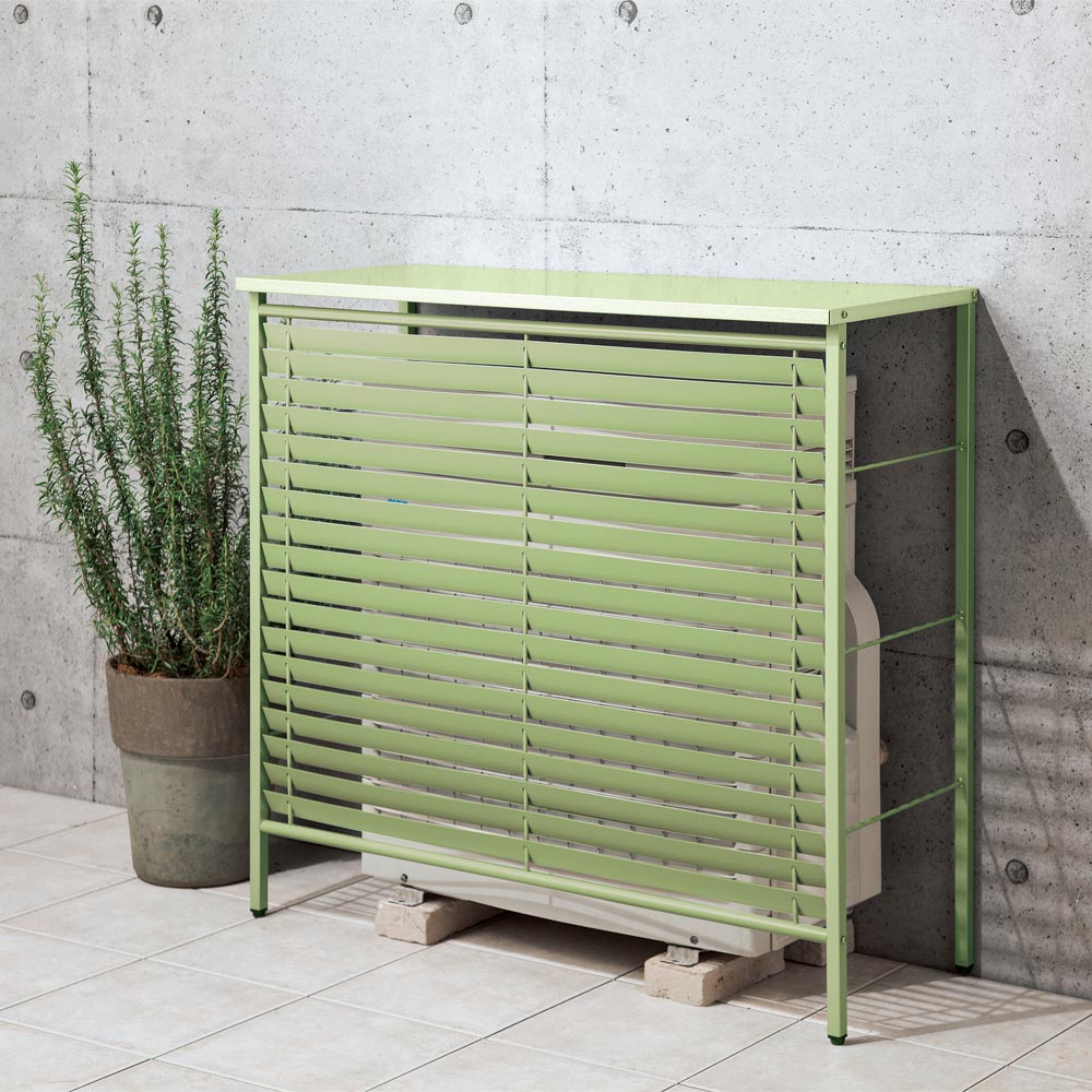 正面の逆ルーバーは、エアコン室外機からの熱風を上方に逃がします。