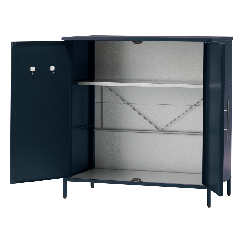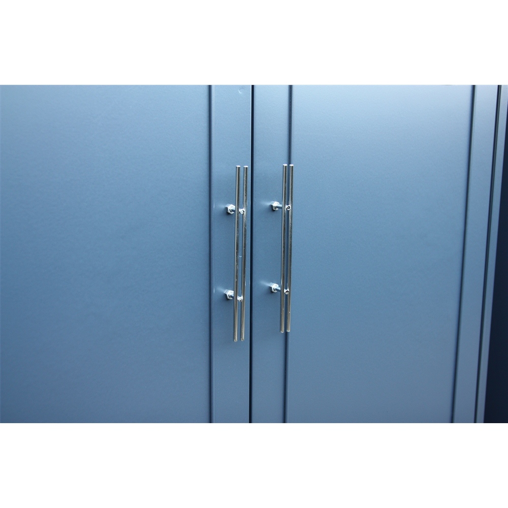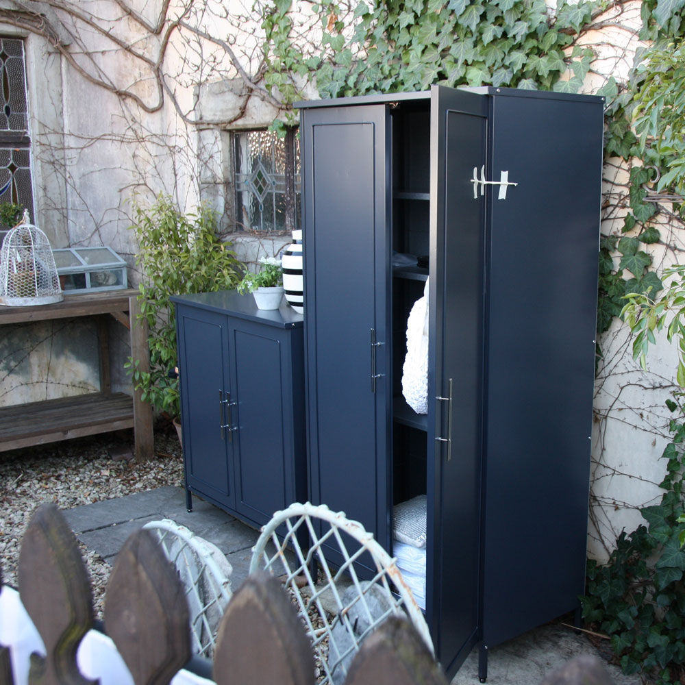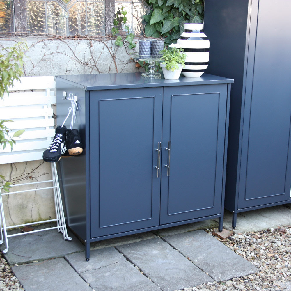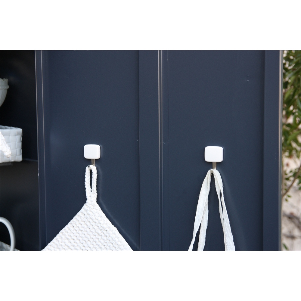 シックなダークグレー色を纏った屋外用収納庫。ヨーロッパの伝統色をイメージしました。ストックヤードも美しくまとめて。ヨーロッパで古くから愛される 伝統の色合いを日本製で再現グリーンに美しく映える、ヨーロッパ伝統の落ち着いたダークグレーの色合い、国内仕上げのしっかり丁寧な作りも魅力です。花々を引き立てるシックな色合いが、お庭の景観を引き締めます。手元に置きたい、でもしまっておきたい園芸ツールの収納には美しい収納庫を。我が家の外壁に素敵にマッチ落ち着いたデザインの物置は、お隣やご近所の目にもつきます。物置はお家の外観の一部になるともいえます。モダンデザインの物置は、お庭からベランダまで素敵に溶け込みます。しっかり収納のロッカーで、ゆとりの収納プランを。頼れる収納力ポリタンクも収納できる、頼れる収納力も自慢。棚板は奥行きが浅めのつくり。棚板と扉の間にスペースがあるので、長い柄のものを収納することができます。作業に必要なツールのほか、日用品のストックもすっきり収まる。定位置を決めれば探す手間が省け、作業効率がアップ!雨水が浸入しにくいつくり上部は「ひさし」構造で、雨水の浸入を防ぎます。天板は雨が入りにくい作りにしました。扉は浸入防止板付きで、内部に雨が吹き込みにくい構造。ホコリも防ぎ、庫内はいつもきれいな状態をキープ。タフな素材を使用。風雨にさらされる天板側面や棚板には、丈夫で耐候性に優れたガルバリウム鋼板を使用。細部にこだわった機能面も充実付属のマグネットフック(2個)で効率的に収納できます。脚部には、設置時のガタツキを抑えるアジャスター付き。お庭づくりを支えるエクステリア収納ガーデニング雑貨やベランダ用品もたっぷり収納できます。設置場所や条件に合わせた物置き収納庫をチョイスして、快適なエクステリアの収納プランを。【信頼と安心の国内工場での生産品】管理の行き届いた日本国内の工場で、加工から製造、梱包に至るまで丁寧に仕上げました。細部の丁寧な仕上がり、国産品ならではの品質は自信を持っておすすめします。【ボンデ鋼板】スチール鋼板に亜鉛被膜の保護を施すことで、耐食性・防食効果を高めた鋼板です。【ガルバリウム鋼板】アルミニウムを溶融した亜鉛合金メッキで表面処理し、耐久性耐熱性と防食作用を兼ねそなえた鋼板です。